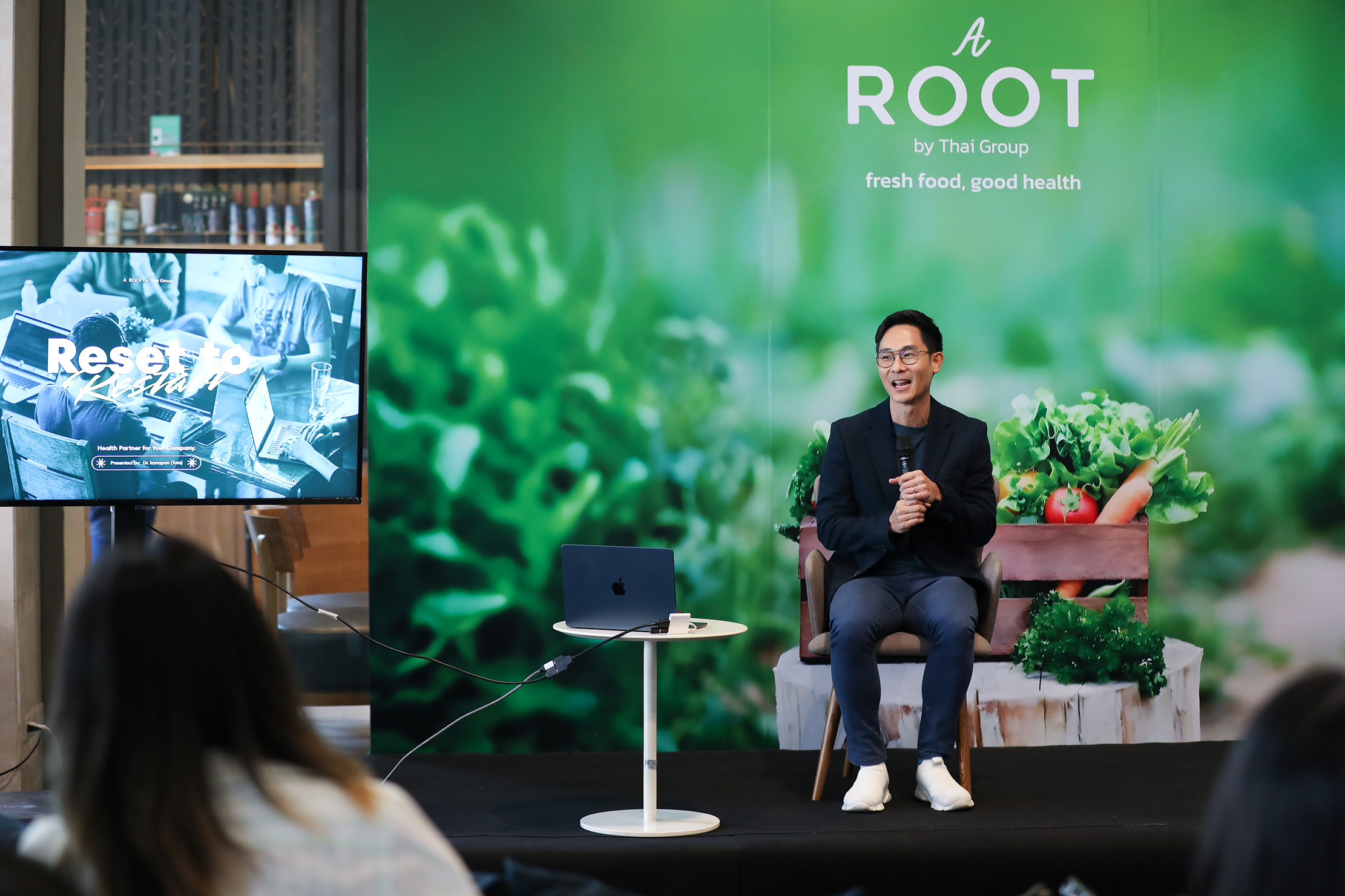 A ROOT by Thai Group จัดกิจกรรมส่งสุขท้ายปีภายใต้ธีม รีเฟรชปีเก่า เติมพลังสุขใจสู่ปีใหม่ ชวนพนักงานและชาวสีลมดูแลกายใจ เติมแรงบันดาลใจรับปีใหม่ผ่านกิจกรรมหลากหลายในงาน อาทิ Special Talk โดย นายโชติพัฒน์ และนางอาทินันท์ พีชานนท์ ประธานและรองประธานกรรมการบริหาร บริษัท ไทยกรุ๊ป โฮลดิ้งส์ จำกัด (มหาชน) ร่วมถ่ายทอดแรงบันดาลใจในการทำงาน การคิดบวก ทัศนคติดีเป็นจุดเริ่มต้นของการทำงานที่นำไปสู่ความสำเร็จ รวมทั้งการดูแลตนเองเพื่อสุขภาพกายใจที่ดีพร้อมรับความท้าทายในปีต่อไป และเวที Health Talk ชวนทุกคน reset to restart “ดูแลกาย และใจให้ Healthy รับปีใหม่” โดย นพ.คณพล ภูมิรัตนประพิณ (หมอตั้ม) แพทย์อายุรกรรม และเวชศาสตร์ผู้สูงอายุ CEO & Co-Founder ของ Health at Work พร้อมด้วยโซนชิม-ชอป อาหาร เครื่องดื่ม ผักผลไม้จากเกษตรธรรมชาติ และสินค้าคุณภาพ รวมไปถึงผลิตภัณฑ์ทางเลือกสุขภาพ ให้ผู้ร่วมงานได้เลือกสรรตลอดงานระหว่างวันที่ 1-3 ธันวาคมที่ผ่านมา ณ บริเวณล็อบบี้และด้านหน้าอาคารไทยกรุ๊ป สำนักงานใหญ่ ถนนสีลม