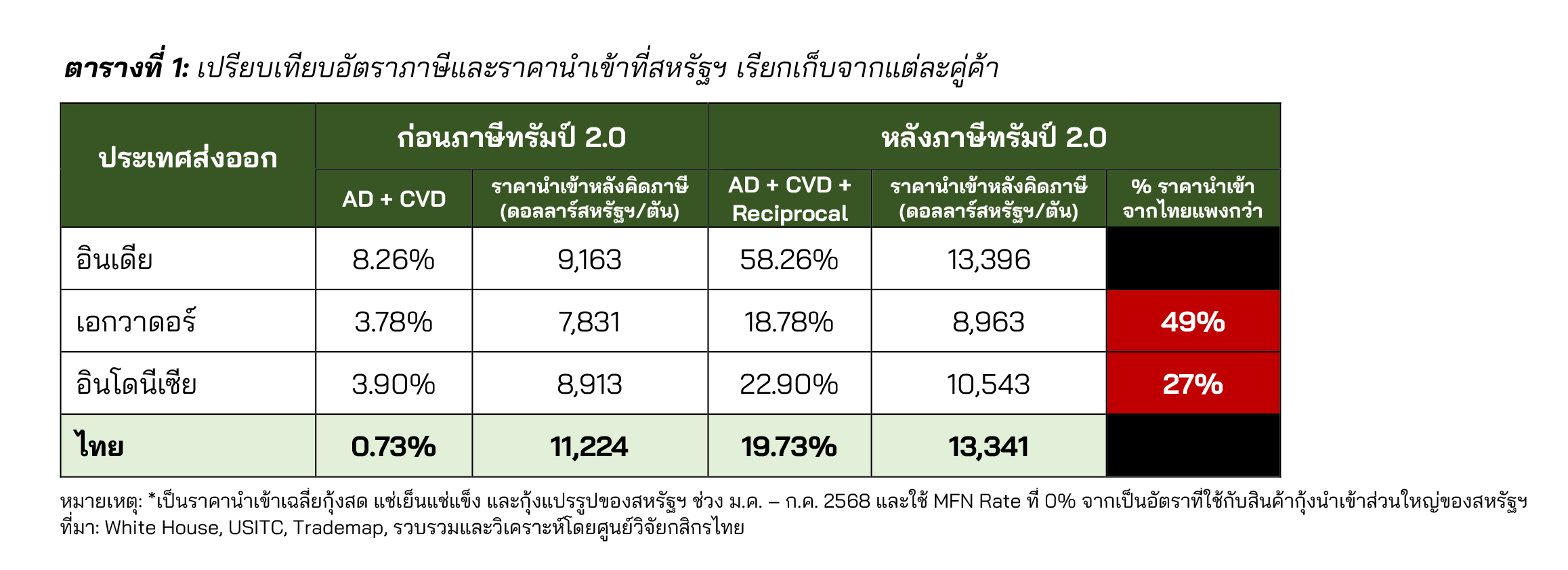 แนวโน้มการส่งออกกุ้งของไทย ยังเผชิญปัญหาความสามารถในการแข่งขัน ทั้งจากต้นทุนการผลิตสูง และผลของ Reciprocal Tariffs