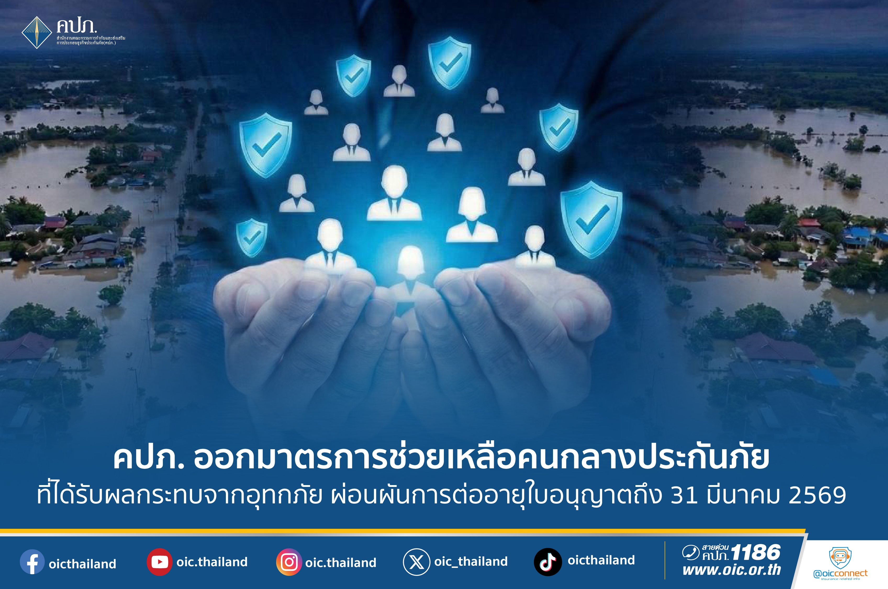 คปภ. ออกมาตรการช่วยเหลือคนกลางประกันภัยที่ได้รับผลกระทบจากอุทกภัย ผ่อนผันการต่ออายุใบอนุญาตถึง 31 มีนาคม 2569