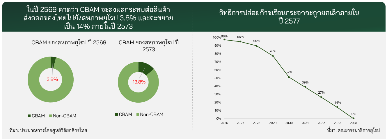 เป้าหมายของ CBAM คือ การสร้าง “การแข่งขันทางการค้าอย่างเท่าเทียม” เพื่อป้องกันไม่ให้ผู้ผลิตในสหภาพยุโรปเสียเปรียบจากการย้ายฐานการผลิตไปต่างประเทศเพื่อลดการปล่อยคาร์บอน ดังนั้น วันที่ 1 มกราคม 2569 จึงถือเป็นการสิ้นสุดของระยะเปลี่ยนผ่าน เนื่องจากกลไกของ CBAM จะเริ่มปรับให้สอดคล้องกับระบบการซื้อขายสิทธิการปล่อยก๊าซเรือนกระจกของสหภาพยุโรป (EU ETS) โดยระบบดังกล่าวจะมีผลบังคับใช้เต็มรูปแบบภายในปี 2577 ซึ่งจะเป็นปีที่สิทธิการปล่อยคาร์บอนแบบให้เปล่า (Free Allowance) สำหรับอุตสาหกรรมที่เกี่ยวข้องจะถูกยกเลิกทั้งหมด
