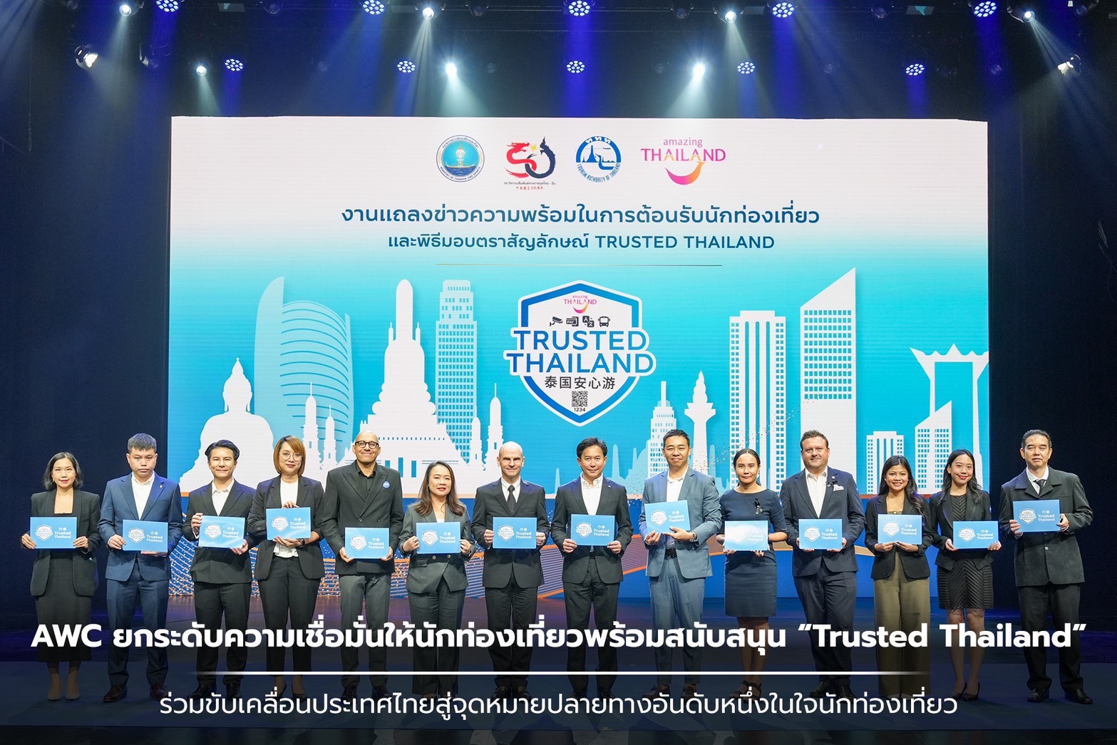 ดร.สิเวศ โรจนสุนทร หัวหน้าคณะสายงานบริหารกลาง และรักษาการหัวหน้าคณะสายงานการตลาดเชิงกลยุทธ์และความยั่งยืน บริษัท แอสเสท เวิรด์ คอร์ป จำกัด (มหาชน) (AWC) เป็นตัวแทนรับมอบตราสัญลักษณ์ “Trusted Thailand” จากการที่การท่องเที่ยวแห่งประเทศไทย (ททท.) พร้อมด้วยพันธมิตรภาครัฐและเอกชน เปิดตัวตราสัญลักษณ์ “Trusted Thailand” อย่างเป็นทางการ เพื่อรับรองมาตรฐานคุณภาพและความปลอดภัยของสถานประกอบการทั่วประเทศ ทั้งนี้ AWC ในฐานะผู้พัฒนาอสังหาริมทรัพย์ชั้นนำที่มุ่งตอบสนองไลฟ์สไตล์แบบครบวงจร ได้ผนวกมาตรฐานของตราสัญลักษณ์ “Trusted Thailand” เข้าเป็นส่วนหนึ่งในการขับเคลื่อนคุณภาพและบริการ โดยความร่วมมือนี้สอดคล้องกับความมุ่งมั่นของ AWC ในการมอบประสบการณ์ที่ปลอดภัย มีคุณภาพ และเชื่อถือได้ ณ สถานประกอบการในเครือทั้งหมด (ทั้งโรงแรม และศูนย์การค้า) เพื่อร่วมยกระดับภาพลักษณ์ประเทศไทยให้เป็นจุดหมายปลายทางอันดับหนึ่ง (Top of Mind Destination) ในใจนักท่องเที่ยวจีน รวมถึงนักท่องเที่ยวทั่วโลก