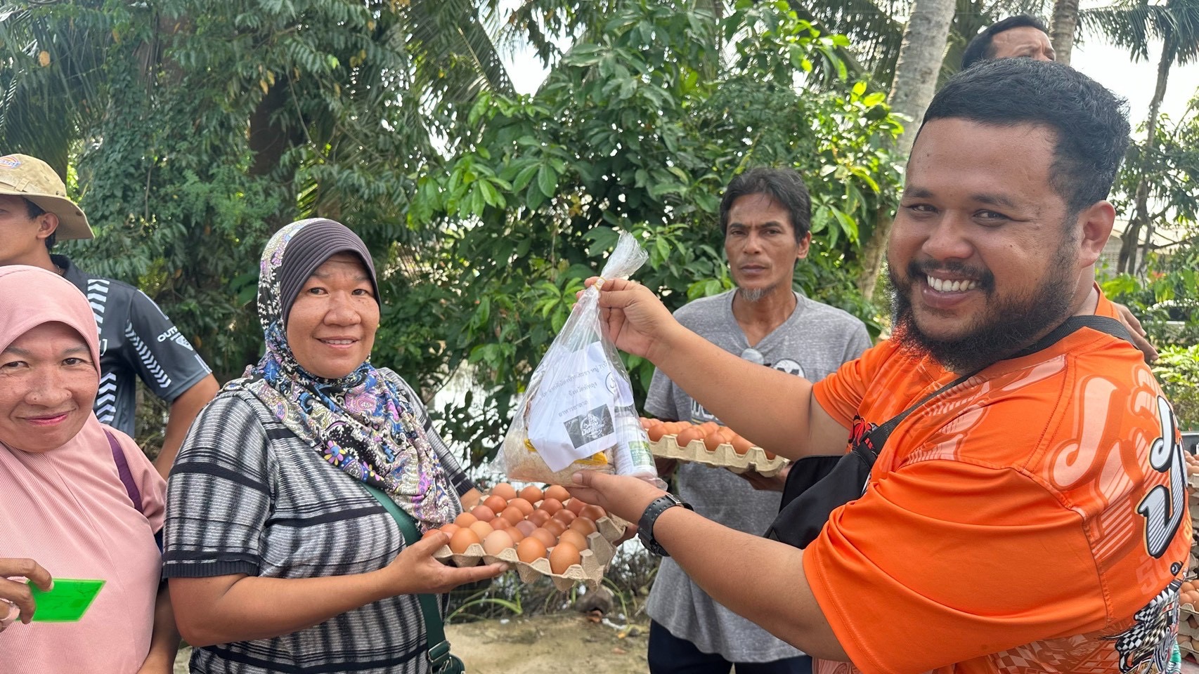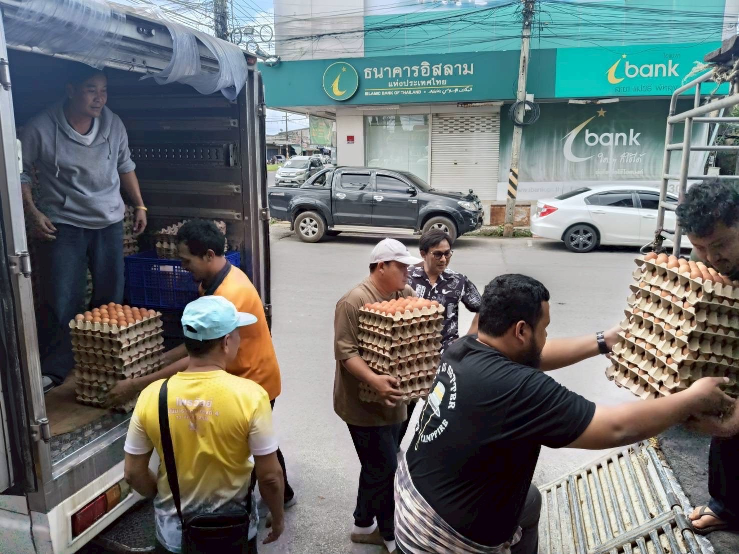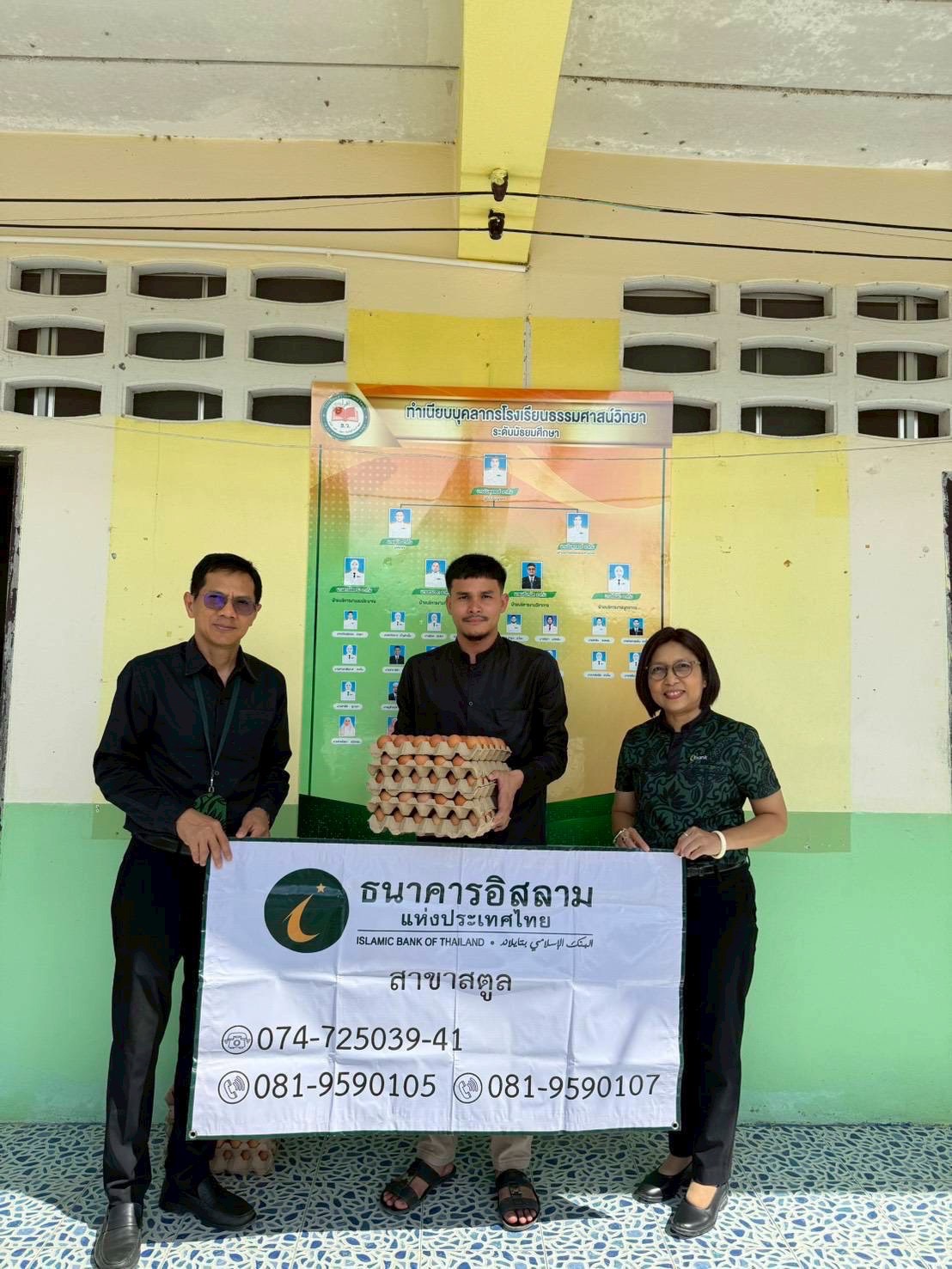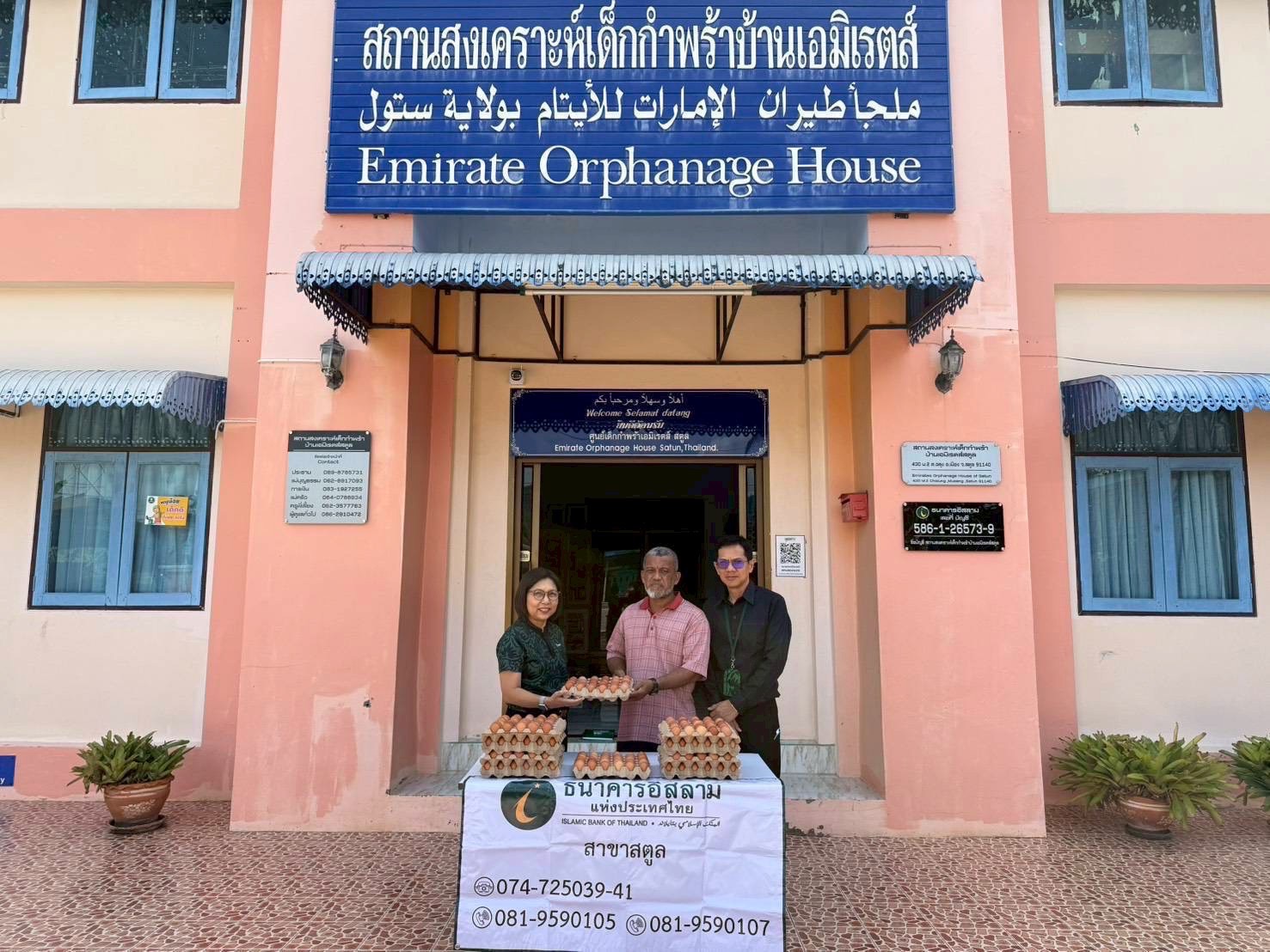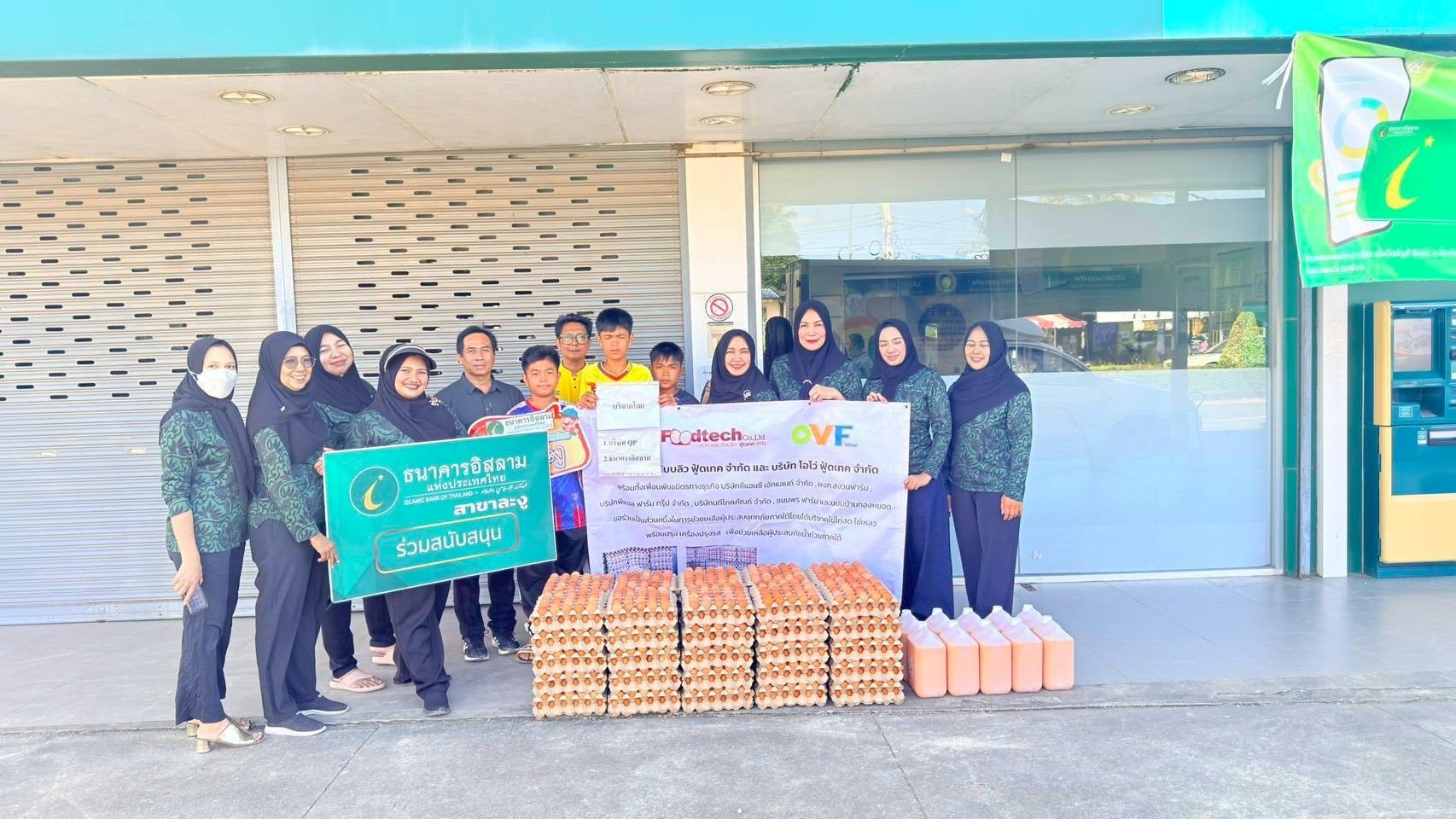 ทั้งนี้ น.สพ. รัชชานนท์ เรืองใจ และ สพ.ญ.รัชนีกร คุปติเวช ผู้บริหาร บริษัท แม่ทาทองฟาร์ม จำกัด ผู้จำหน่ายไข่ไก่สด ภายใต้ Brand “Happy Egg” คู่ค้าทางธุรกิจกิจของธนาคารอีกรายที่ได้ให้การสนับสนุนอาหารสด ผ่านธนาคารอิสลามแห่งประเทศไทย สาขาในพื้นที่ภาคใต้ อาทิ สาขาแม่ขรี จังหวัดพัทลุง สาขาละงู และสาขาสตูล จังหวัดสตูล ประกอบด้วย รายการไข่สด 21,000 ฟอง จำนวน 700 ถาด และไข่รวมเหลวพาสเจอร์ไรซ์ 250 กิโลกรัม จำนวน 50 แกลลอน ลงพื้นที่แจกจ่ายให้ความช่วยเหลือ นำโดยทีมจิตอาสาอำเภอคลองเฉลิม จังหวัดพัทลุง มอบไข่สดยกแผง และไข่รวมเหลวพาสเจอร์ไรซ์ แก่พี่น้องผู้ประสบอุทกภัยในอำเภอปากปากพะยูน เกาะนางคำใต้ เกาะนางคำเหนือ บ้านแหลมไก่ผู้ บ้านช่องฟืน และสถาบันฮาฟิสอัลกุรอานมัรกัสพัทลุง (บ้านเกาะนางคำ) และในพื้นที่อำเภอละงู และอำเภอเมือง จังหวัดสตูล ทางทีมสาขาในพื้นที่ส่งมอบไข่สดยกแผง และไข่รวมเหลวพาสเจอร์ไรซ์ให้กับมัสยิด 5 แห่ง สถานสงเคราะห์เด็กกำพร้าบ้านเอมิเรสต์ โรงเรียนนิด้าศึกษาศาสตร์ โรงเรียนมุสลิมสตูลวิทยา และโรงเรียนในพื้นที่อีก 4 แห่ง ซึ่งปัจจุบันลูกค้าธนาคารจาก บริษัท เอส.ดับบลิว.ฟู้ดเทค จำกัด และบริษัท โอโว่ ฟู้ดเทค จำกัด และบริษัท แม่ทาทองฟาร์ม จำกัด ได้ส่งมอบไข่ไก่สดไปแล้ว จำนวน 36,000 ฟอง รวม 1,200 แผง ไข่รวมเหลวพาสเจอร์ไรซ์ 500 กิโลกรัม รวม 100 แกลลอน และไข่ต้มปอกเปลือก 5,000 ฟอง จำนวน 50 ถัง นอกจากนี้ยังมีผู้แทนมูลนิธิยามเฝ้าแผ่นดิน ร่วมลงพื้นที่ส่งมอบความช่วยเหลือร่วมกัน ในโอกาสเดียวกันนี้ อีกด้วย