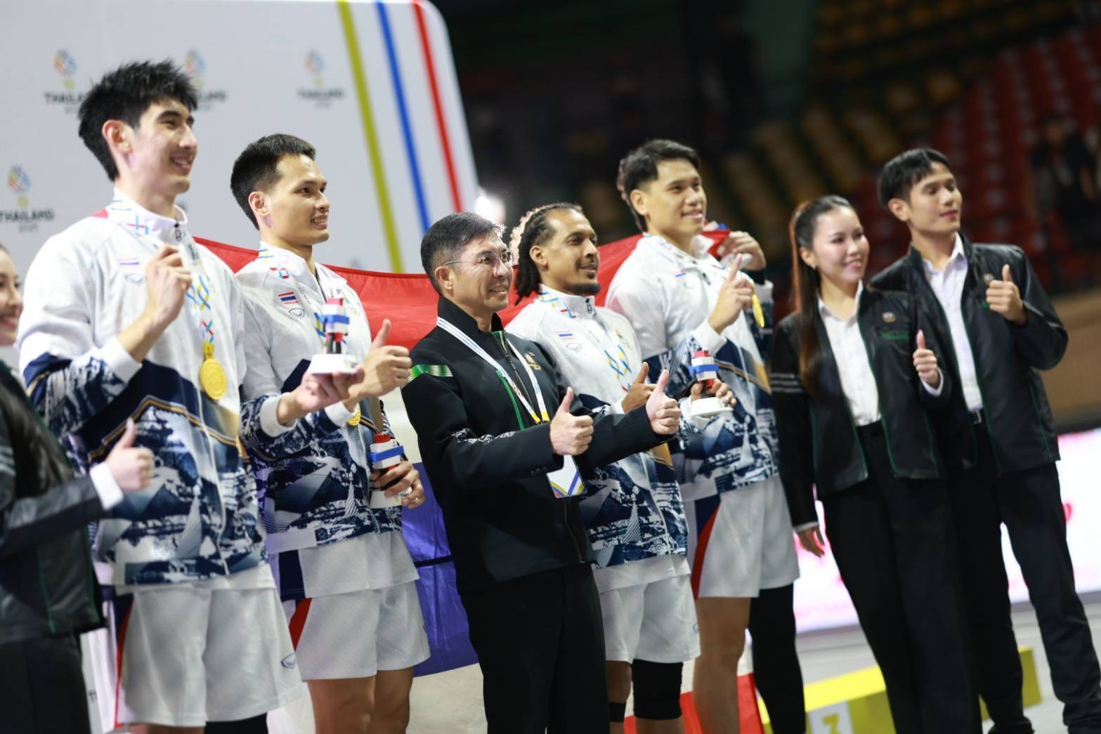 นายฉัตรชัย ศิริไล ผู้จัดการธนาคารเพื่อการเกษตรและสหกรณ์การเกษตร (ธ.ก.ส.) ร่วมชมการแข่งขันและส่งแรงใจเชียร์นักกีฬาบาสเกตบอลไทย 3x3 ประเภททีมชาย และประเภททีมหญิง ในศึกซีเกมส์ ครั้งที่ 33 ในฐานะผู้สนับสนุนสมาคมกีฬาบาสเกตบอลแห่งประเทศไทยอย่างเป็นทางการ ภายใต้ “โครงการ 1 สมาคมกีฬา 1 รัฐวิสาหกิจพลัส” โดยทีมบาสเกตบอลชายคว้าเหรียญทอง และทีมบาสเกตบอลหญิงคว้าเหรียญเงินให้แก่ประเทศไทย สร้างความภาคภูมิใจให้แก่ประชาชนชาวไทยทั้งประเทศ นอกจากนี้ ผู้จัดการ ธ.ก.ส. ได้รับเกียรติมอบเหรียญรางวัลให้แก่นักกีฬาบาสเกตบอล 3x3 ประเภททีมชายอีกด้วย ณ สนามกีฬานิมิบุตร สนามกีฬาแห่งชาติ กรุงเทพฯ เมื่อวันที่ 11 ธันวาคม 2568