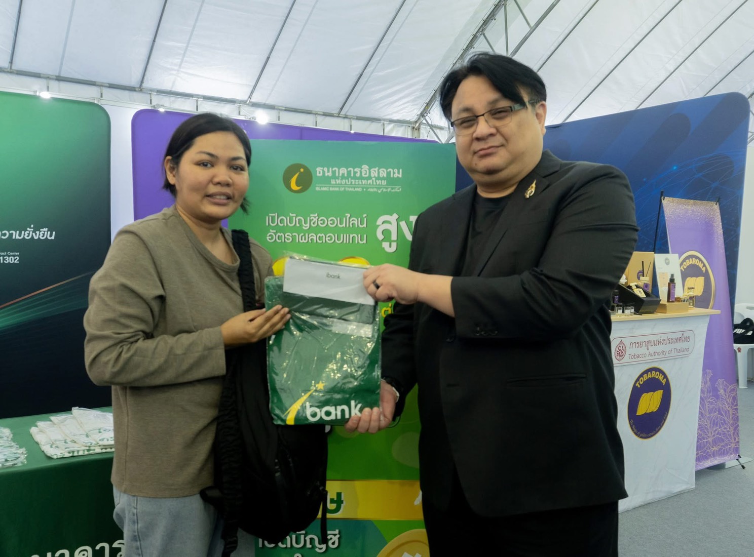 ในการนี้ ธนาคารอิสลามแห่งประเทศไทย (ไอแบงก์) โดยนายจักรี บุณยเกียรติ ผู้ช่วยกรรมการผู้จัดการ ผู้บริหารกลุ่มงานยุทธศาสตร์องค์กร และนายกูยไวนี สตอหลง ผู้อำนวยการผ่ายสื่อสารและภาพลักษณ์องค์กร ปฏิบัติหน้าที่ผู้อำนวยการสำนัก สำนักป้องกันการทุจริต ร่วมเฝ้า ฯ รับเสด็จ พร้อมร่วมออกร้านกาชาดกระทรวงการคลัง ในงานกาชาดประจำปี 2568 ระหว่างวันที่ 11-21 ธันวาคม 2568 โดยมี นายอัครุตม์ สนธยานนท์ อธิบดีกรมธนารักษ และดร.พรชัย ฐีระเวช อธิบดีกรมสรรพสามิต ได้ให้เกียรติเยี่ยมชมบูธธนาคารพร้อมกับประชาชนผู้สนใจเข้าร่วมทำกิจกรรมกันอย่างคึกคัก ณ สวนลุมพินี