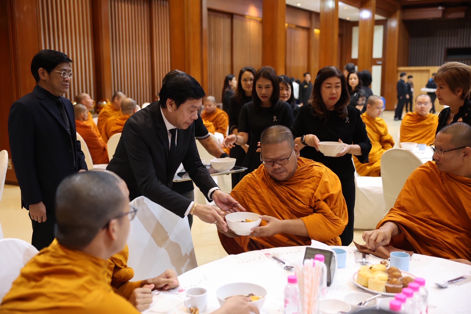 นางลภาวรรณ จันทร์กระจ่าง รองผู้อำนวยการธนาคารออมสิน รักษาการแทนผู้อำนวยการธนาคารออมสิน พร้อมด้วยคณะผู้บริหารและพนักงาน ร่วมพิธีบำเพ็ญกุศลทักษิณานุประทาน ในวาระครบปัญญาสมวาร (50 วัน) แห่งการสวรรคต อุทิศถวายเป็นพระราชกุศลแด่สมเด็จพระนางเจ้าสิริกิติ์ พระบรมราชินีนาถ พระบรมราชชนนีพันปีหลวง โดยถวายภัตตาหารเช้าและร่วมทำบุญตักบาตร พระสงฆ์ 50 รูป เพื่อแสดงความจงรักภักดีและสำนึกในพระมหากรุณาธิคุณอย่างหาที่สุดมิได้ ณ ธนาคารออมสินสำนักงานใหญ่ เมื่อวันที่ 12 ธันวาคม 2568