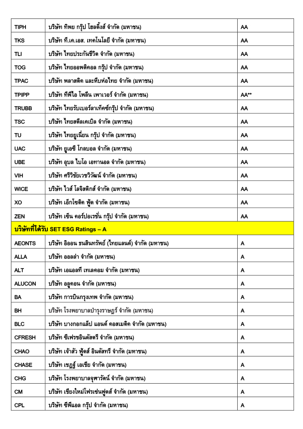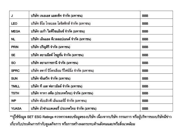 SET ESG Ratings คัดเลือกจาก บจ. ที่สมัครใจเข้าร่วมการประเมิน และมีผลคะแนนจากการตอบแบบประเมินผ่าน 50%