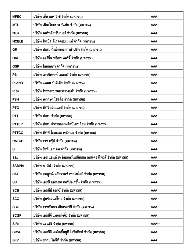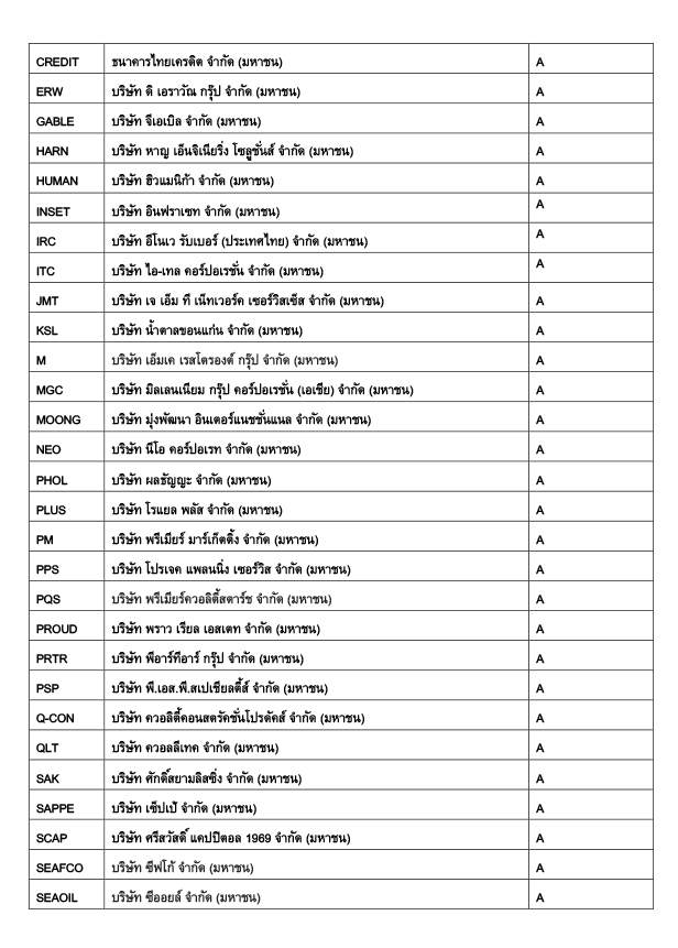 • ไม่เป็นบริษัทที่ถูกขึ้นเครื่องหมาย CB, CC, CF, CS