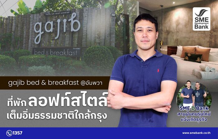 สูดลมหายใจให้เต็มปอด ท่ามกลางธรรมชาติอันเงียบสงบ หลบความวุ่นวายจากเมืองใหญ่ แล้วมาเอน กายพักผ่อนในที่พักสไตล์ลอฟท์ ในบรรยากาศสวน ณ อ.บางคนที จ.สมุทรสงคราม เมืองรองใกล้กรุงเทพฯ ที่นี่คือ "กระจิบ เบด แอนด์ เบรคฟาสต์" (Gajib bed and breakfast) สถานที่พักและคาเฟ่ ที่มี “คุณเพชร ศรฤทธิ์ชิงชัย” คนรุ่นใหม่เป็นเจ้าของกิจการ โดยมี SME D Bank ธนาคารเพื่อเอสเอ็มอีไทย เติมทุนเสริมช่วยแจ้งเกิดธุรกิจ และคอยเคียงข้างตลอดเส้นทางที่ผ่านมา สนับสนุนให้สถานที่แห่งนี้ พร้อมต้อนรับนักท่องเที่ยวทั้งชาวไทยและต่างชาติ ให้ได้มาชาร์จพลัง เติมความสดชื่น และสัมผัสความผ่อนคลายได้เสมอ