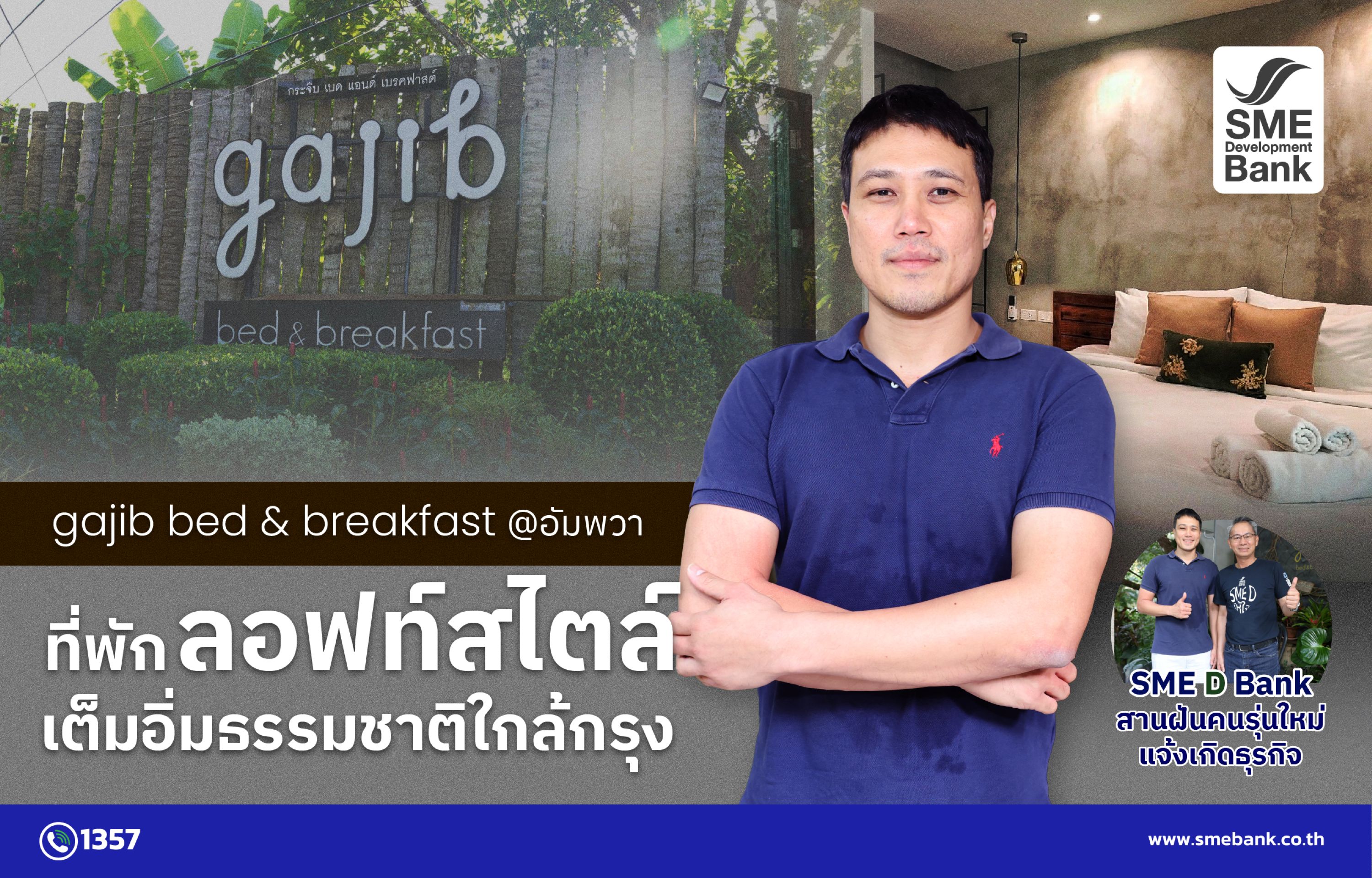 ธุรกิจที่เริ่มต้นจากความหลงใหลในเสน่ห์ของธรรมชาติและเงียบสงบ เมื่อรวมกับความพยายามมุ่งมั่นพัฒนาสร้างมาตรฐาน ช่วยให้ Gajib bed and breakfast เหมาะแก่การเป็นสถานที่แห่งการพักผ่อนอย่างแท้จริง พร้อมต้อนรับแขกนักท่องเที่ยวทั้งในและต่างประเทศ ที่จะได้หลบเลี่ยงจากความวุ่นวาย ได้เติมพลังเต็มที่ และเก็บความประทับใจกลับไปแน่นอน