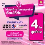 หลักสูตร Smart Finance Upskill การพัฒนาความรู้ทางการเงินเพื่อร้านค้ารายย่อยโครงการคนละครึ่ง พลัสเป็นการเรียนออนไลน์กับธนาคารออมสิน ภายใต้โครงการพัฒนาความรู้ทักษะ (Upskill) หรือเรียนรู้ทักษะใหม่ (Reskill) สำหรับผู้ประกอบการร้านค้ารายย่อย ประเภทบุคคลธรรมดา มุ่งเสริมทักษะทางการเงินที่จำเป็นต่อการทำธุรกิจ ครอบคลุมการทำบัญชี การคิดต้นทุน การตั้งราคาขาย และความรู้ก่อนยื่นขอกู้ ผู้ที่เรียนจบและผ่านเกณฑ์ จะได้รับประกาศนียบัตรและรับสิทธิ์เงินสนับสนุนจากภาครัฐตามเงื่อนไขที่กำหนด สอบถามข้อมูลเพิ่มเติมเกี่ยวกับการลงทะเบียนเรียนหลักสูตร Smart Finance Upskill และข้อมูลทั่วไปเกี่ยวกับโครงการ Upskill/Reskill คนละครึ่ง พลัส ที่ GSB Contact Center โทร. 1115 กด 7