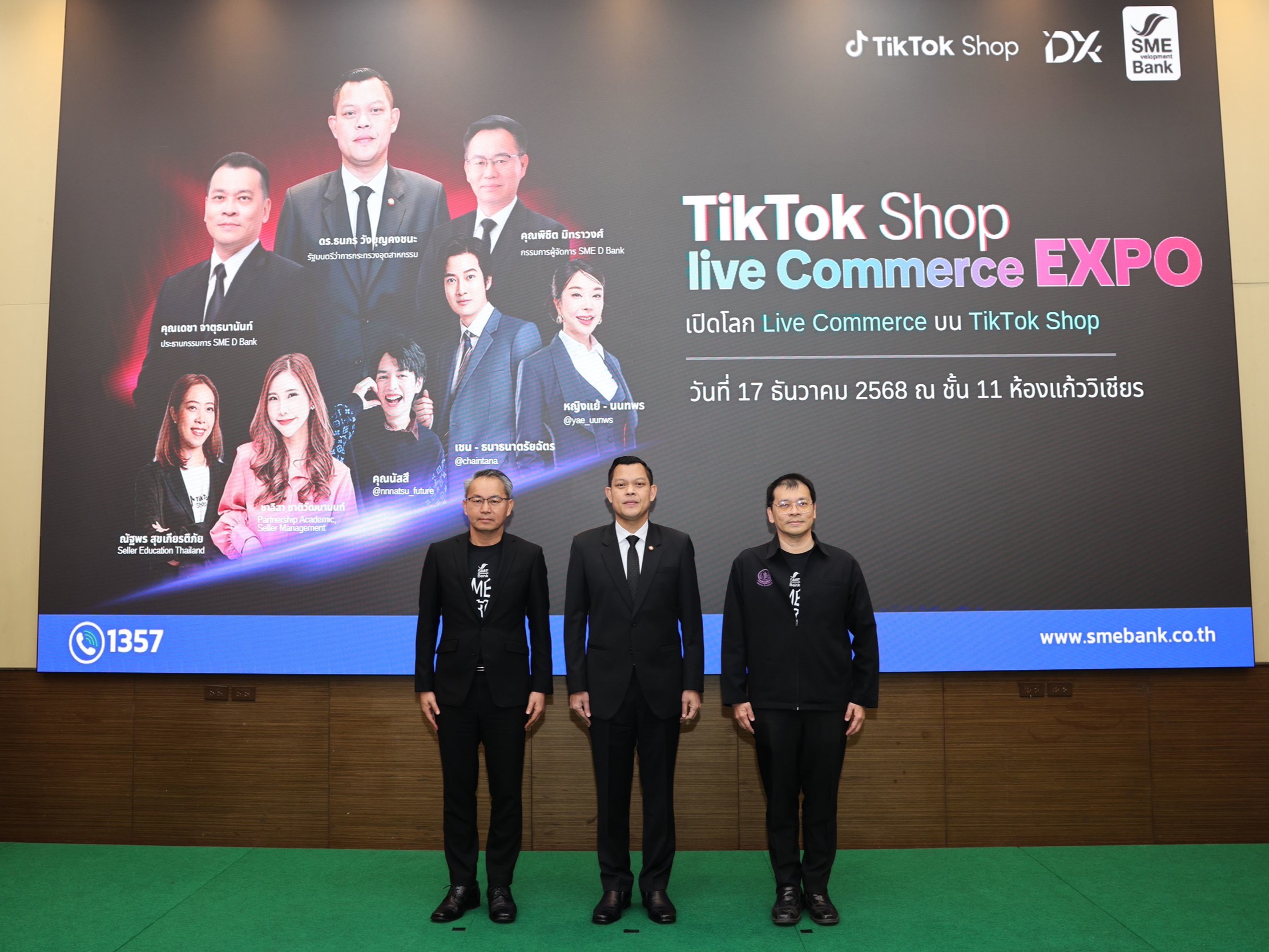 SME D Bank จับมือ TikTok Thailand จัดงาน "Live Commerce EXPO 2025" ยกทัพอินฟลูฯ 15 ช่องดังที่มีกว่า 1.46 ล้านผู้ติดตาม มาช่วยไลฟ์รีวิวขายสินค้า เพิ่มรายได้ขยายตลาดให้เอสเอ็มอีทั่วไทยกว่า 400 ราย ควบคู่จัด Workshop เสริมทักษะความรู้ ปรับตัวสู่โลกธุรกิจยุคใหม่