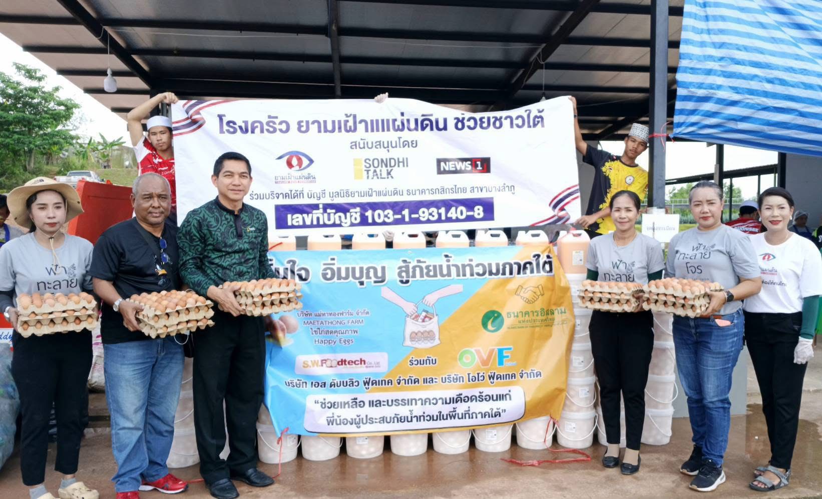 ทั้งนี้ น.สพ. รัชชานนท์ เรืองใจ และสพ.ญ.รัชนีกร คุปติเวช ผู้บริหาร บริษัท แม่ทาทองฟาร์ม จำกัด ผู้จำหน่ายไข่ไก่สด ภายใต้ Brand “Happy Egg” นายสุรพล เค้าภูไทย ผู้บริหาร บริษัท เอส.ดับบลิว.ฟู้ดเทค จำกัด และบริษัท โอโว่ ฟู้ดเทค จำกัด และว่าที่ร้อยตรี สุวรรณี ข้องแก้ว กรรมการผู้จัดการ บริษัท แคปปิตอล ฟู้ด อินเตอร์เนชั่นแนล จำกัด ยังคงให้การสนับสนุนอาหารสดอย่างต่อเนื่อง ผ่านเครือข่ายพันธมิตรของธนาคารอิสลามแห่งประเทศไทย ได้แก่ สภาเครือข่ายช่วยเหลือด้านมนุษยธรรม สำนักจุฬาราชมนตรี และมูลนิธิยามเฝ้าแผ่นดิน ประกอบด้วย รายการไข่สด 30,000 ฟอง จำนวน 1,000 ถาด ไข่ต้มปอกเปลือก 23,000 ฟอง จำนวน 230 ถัง และไข่รวมเหลวพาสเจอร์ไรซ์ 180 กิโลกรัม จำนวน 36 แกลลอน และปลากระป๋อง จำนวน 750 กระป๋อง ลงพื้นที่แจกจ่ายให้ความช่วยเหลือในอำเภอหาดใหญ่ และอำเภอสะเดา จังหวัดสงขลา โดยมีผู้แทนลูกค้าธนาคารอิสลามแห่งประเทศไทย ส่งมอบให้กับนายอิสม่าแอน หมัดอะด้ำ รองประธานสภาเครือข่ายช่วยเหลือด้านมนุษยธรรม สำนักจุฬาราชมนตรี และ อาจารย์ พทป.แวสะมิง แวหมะ (หมอแวร์) และทีมงานคุณอิ๊ คุณณัฐวุฒิ เป็นผู้รับผิดชอบโรงครัวฮาลาล ณัฐชาณาฮิลล์ (Halal) ในนามมูลนิธิยามเฝ้าแผ่นดิน ณ โรงแรมณัฐชาณา ฮิลล์ ถนนสนามบิน-ลพบุรีราเมศวร์ ตำบลควนลัง อำเภอหาดใหญ่ จังหวัดสงขลา