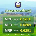 ธ.ก.ส. ประกาศปรับลดอัตราดอกเบี้ยเงินกู้ตามทิศทางอัตราดอกเบี้ยนโยบาย สูงสุดร้อยละ 0.25 ต่อปี โดยปรับลดอัตราดอกเบี้ยเงินกู้ประเภทเงินเกินบัญชี (MOR) ลงร้อยละ 0.25 ต่อปี คงเหลือร้อยละ 6.125 ต่อปี อัตราดอกเบี้ยลูกค้านิติบุคคลชั้นดี (MLR) ปรับลดลงร้อยละ 0.10 ต่อปี คงเหลือร้อยละ 6.025 ต่อปี เพื่อช่วยผู้ประกอบการ SME ภาคการเกษตรในการฟื้นตัว ลดผลกระทบทางธุรกิจจากภัยธรรมชาติและมาตรการภาษีของสหรัฐอเมริกา โดยให้มีผลตั้งแต่วันที่ 1 มกราคม 2569 เป็นต้นไป
