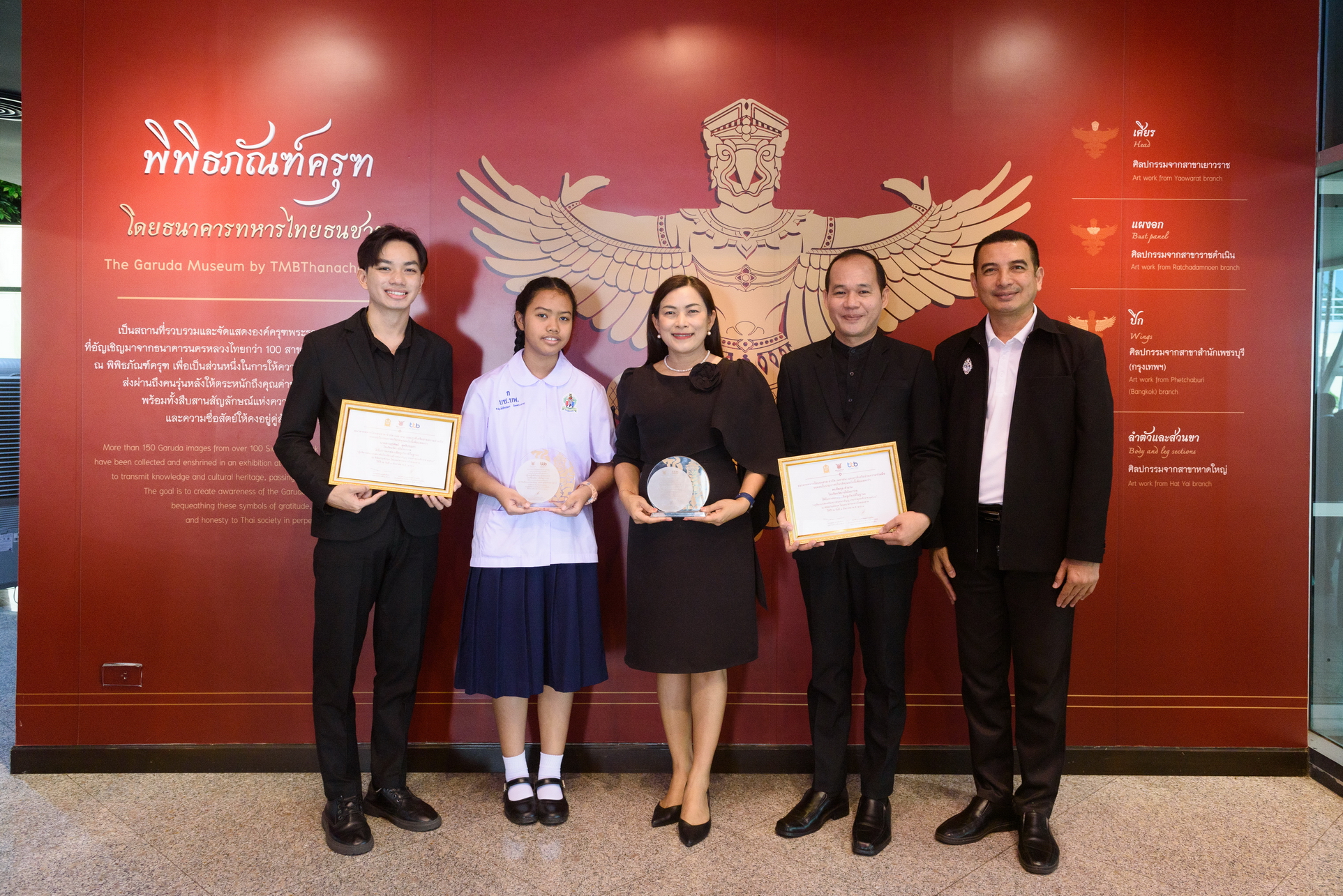 ทีเอ็มบีธนชาต หรือ ทีทีบี จัดพิธีมอบใบประกาศเกียรติคุณและโล่เกียรติคุณ ภายใต้โครงการ "พิพิธภัณฑ์ครุฑ ร่วมส่งเสริม สืบสาน ความซื่อสัตย์ กตัญญู ความดี สู่สถานศึกษา และเยาวชน ประจำปี 2568" เพื่อส่งเสริมคุณธรรม หลัก 3 ประการ “ซื่อสัตย์ กตัญญู และความดี” อันเป็นหัวใจสำคัญในการปลูกฝังรากฐานของเยาวชนไทยให้เติบโตเป็นพลเมืองที่มีคุณภาพอย่างยั่งยืน พร้อมยกย่องสถานศึกษาที่เป็นหน่วยบ่มเพาะคุณธรรมที่ดีงาม