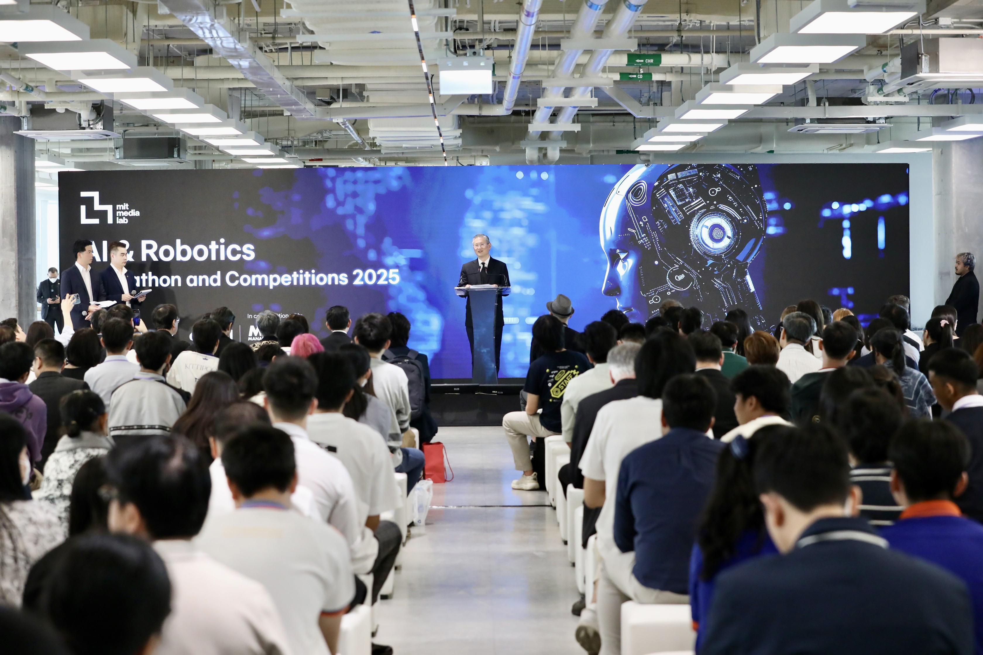 สร้างสรรค์นวัตกรรมเพื่ออนาคต - ธนาคารกรุงเทพ จำกัด (มหาชน) นำโดย นายชาติศิริ โสภณพนิช กรรมการผู้จัดการใหญ่ นายกอบศักดิ์ ภูตระกูล กรรมการรองผู้จัดการใหญ่ ร่วมกับ MIT Media Lab นำโดยศาสตราจารย์โจเซฟ พาราดิโซ ผู้อำนวยการกลุ่มวิจัย Responsive Environments และคณะผู้บริหารโครงการ Cloud 11 เปิดตัวโครงการ "AI & Robotics Hackathon and Competitions 2025" ภายใต้แนวคิด “Building a Better Future for All” มุ่งส่งเสริมการพัฒนาและการประยุกต์ใช้เทคโนโลยีปัญญาประดิษฐ์ (AI) และหุ่นยนต์ เพื่อร่วมแก้ไขโจทย์สำคัญของสังคม ทั้งด้านสุขภาพ การศึกษา และการพัฒนาเมืองอย่างยั่งยืน โดยใช้ประเทศไทยเป็นฐานสำคัญในการเชื่อมโยงเครือข่ายนักวิจัย นักพัฒนา และบุคลากรด้านเทคโนโลยีจากทั้งในประเทศและภูมิภาคอาเซียน