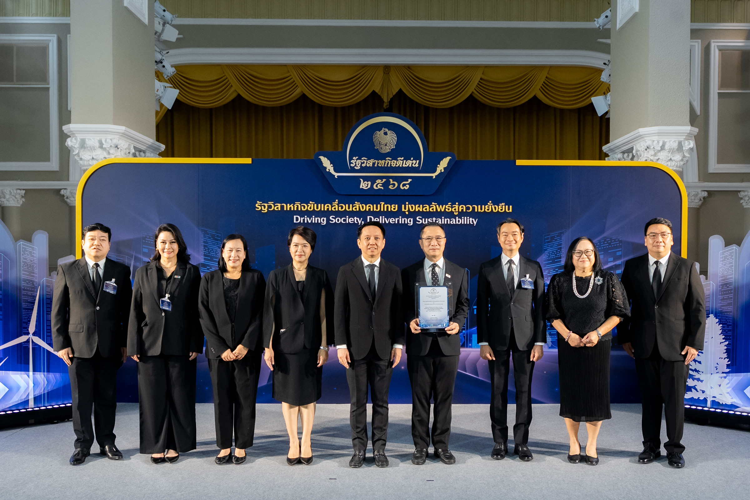 นายชลัช รัตนบุญนิธิ กรรมการผู้จัดการ ธนาคารเพื่อการส่งออกและนำเข้าแห่งประเทศไทย (EXIM BANK) รับมอบรางวัลชมเชยประเภทรางวัลการดำเนินงานอย่างรับผิดชอบต่อสังคมและสิ่งแวดล้อมดีเด่น จากนายธิบดี วัฒนกุล ผู้อำนวยการสำนักงานคณะกรรมการนโยบายรัฐวิสาหกิจ ในงานมอบรางวัลรัฐวิสาหกิจดีเด่นประจำปี 2568 จัดโดยสำนักงานคณะกรรมการนโยบายรัฐวิสาหกิจ (สคร.) กระทรวงการคลัง ภายใต้แนวคิด “รัฐวิสาหกิจขับเคลื่อนสังคมไทย มุ่งผลลัพธ์สู่ความยั่งยืน Driving Society, Delivering Sustainability” ณ ทำเนียบรัฐบาล เมื่อวันที่ 22 ธันวาคม 2568 สะท้อนให้เห็นถึงความมุ่งมั่นของ EXIM BANK ที่ให้ความสำคัญกับการพัฒนาชุมชนโดยเชื่อมโยงกับความยั่งยืน ผ่าน “โครงการชุมชนเข้มแข็ง ความเป็นอยู่ยั่งยืน” ซึ่ง EXIM BANK ดำเนินโครงการ CSR ดังกล่าวโดยความร่วมมือกับเครือข่ายชุมชน ภาครัฐ ภาควิชาการ และภาคเอกชนที่เกี่ยวข้องอย่างมีบูรณาการบนหลักความรับผิดชอบต่อสังคมและสิ่งแวดล้อม เสริมสร้างความรู้ทางการเงิน พัฒนาศักยภาพของชุมชนในการต่อยอดการพัฒนาสินค้าให้ได้คุณภาพตามมาตรฐานสากล นำไปสู่การสร้างรายได้ที่มั่นคงและยั่งยืน ตลอดจนส่งเสริมการเกษตรยั่งยืนโดยใช้โมเดลการเสริมสร้างความเข้มแข็งของชุมชนเชื่อมโยงกับการพัฒนาอย่างยั่งยืนทั้งในมิติเศรษฐกิจ สังคม และสิ่งแวดล้อม