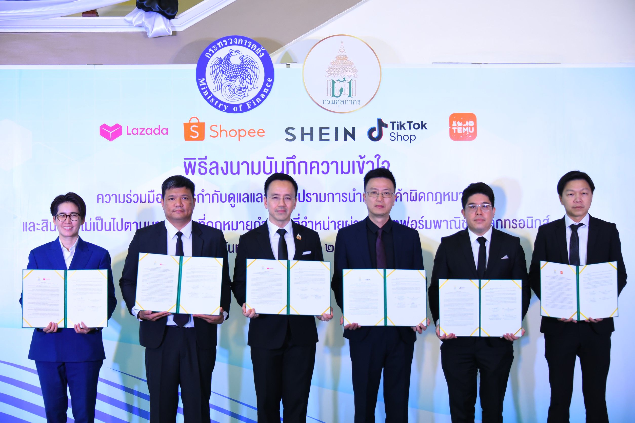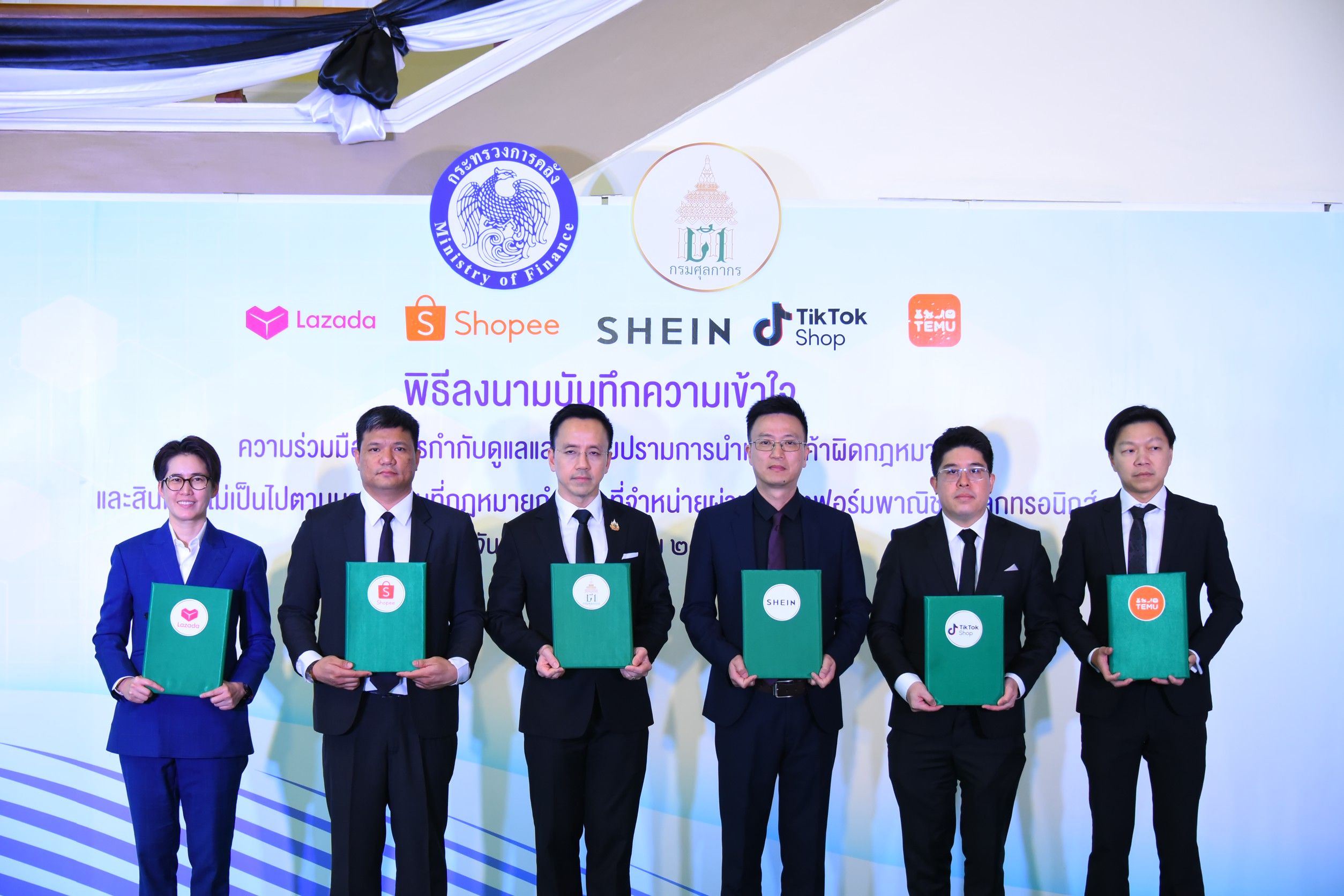 กรมศุลกากรจัดพิธีลงนามบันทึกความเข้าใจ ความร่วมมือในการกำกับดูแลและปราบปรามการนำเข้าสินค้าผิดกฎหมายและสินค้าที่ไม่เป็นไปตามมาตรฐานที่กฎหมายกำหนด โดยมี นายพันธ์ทอง ลอยกุลนันท์ อธิบดีกรมศุลกากร เป็นประธานในพิธีฯ และนางสาวสุนทรียา ทวิชาประสิทธิ์ รองอธิบดีกรมศุลกากร เป็นผู้รายงานความเป็นมา วัตถุประสงค์ และเป้าหมายความร่วมมือ ร่วมด้วย พันโทหญิง ดร.ธมกร ศุภธนรังสี รองประธานฝ่ายรัฐสัมพันธ์ บริษัท ลาซาด้า จำกัด นายกันตภณ พร้อมมูล ผู้จัดการฝ่ายกิจการองค์กร บริษัท ช้อปปี้ (ประเทศไทย) จำกัด Mr. Alvin Yang Head of Global Customs Affairs Fashion Choice Pte. Ltd. (SHEIN) นายพาวิชช์ ศุภพิพัฒน์ ผู้จัดการฝ่ายนโยบายสาธารณะและรัฐกิจสัมพันธ์ บริษัท ติ๊กต๊อก ช็อป (ประเทศไทย) จำกัด และนายทัศนุ ชุติกานนท์ ผู้ประสานงานในประเทศไทย ผู้แทนจาก TEMU ณ ห้องโถง อาคาร 1 กรมศุลกากร