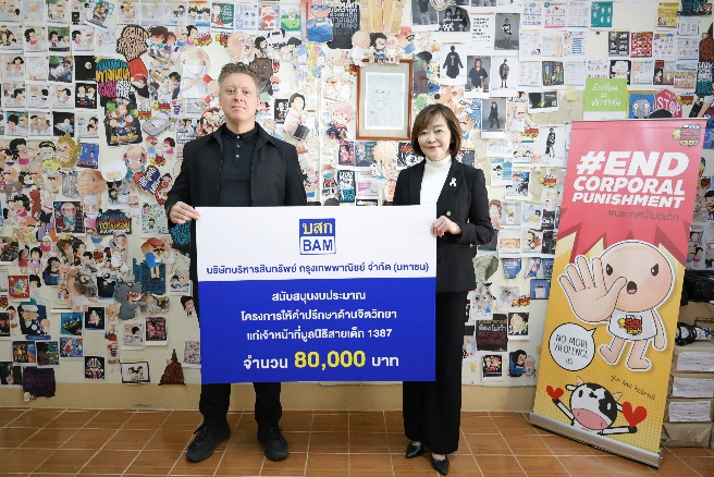 บริษัทบริหารสินทรัพย์ กรุงเทพพาณิชย์ จำกัด (มหาชน) หรือ BAM ให้การสนับสนุนงบประมาณจำนวน 80,000 บาท แก่มูลนิธิสายเด็ก 1387 เพื่อดำเนิน โครงการให้คำปรึกษาด้านจิตวิทยาแก่เจ้าหน้าที่ผู้ปฏิบัติงานด้านการคุ้มครองเด็ก ภายใต้แนวคิดการเสริมสร้างความเข้มแข็งทั้งด้านจิตใจและศักยภาพในการทำงานของบุคลากร