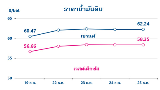 แนวโน้มสถานการณ์ราคาน้ำมันดิบ (19 – 25 ธ.ค. 68)