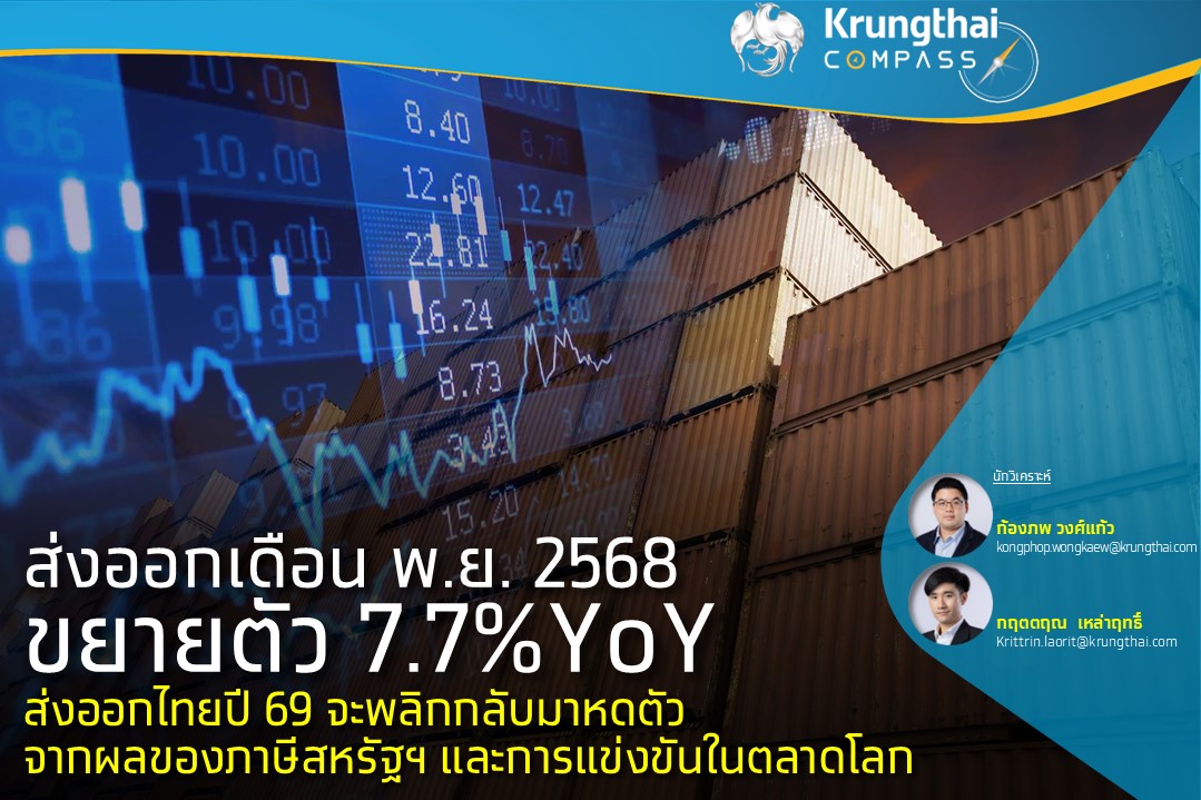 Krungthai COMPASS คาดว่าการส่งออกไทยในปี 2569 จะหดตัวจากมาตรการภาษีของสหรัฐฯ ที่จะส่งผลกระทบต่อการส่งออกไทยเต็มปี