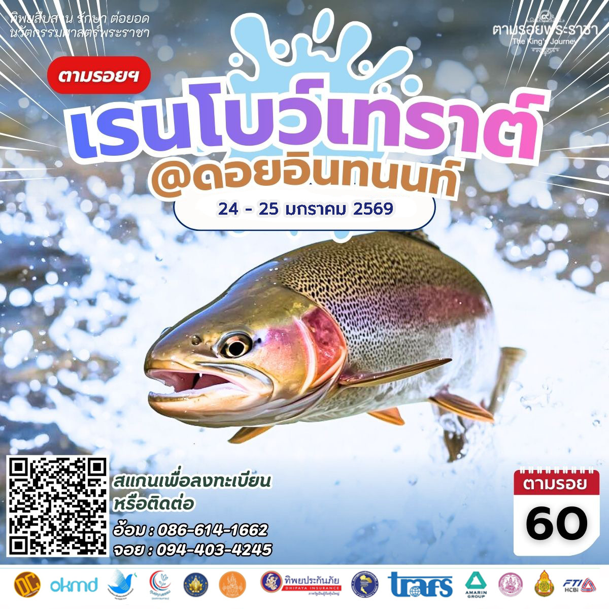 เชิญร่วมโครงการทิพยสืบสาน รักษา ต่อยอด นวัตกรรมศาสตร์พระราชา ครั้งที่ 60 ในวันที่ 24 – 25 มกราคม 2569 เปิดรับสมัครตั้งแต่วันนี้เป็นต้นไป สอบถามข้อมูลเพิ่มเติมที่ คุณพุทธชาด โทรศัพท์ 086 614 1662 FB : ตามรอยพระราชา-The King’s Journey