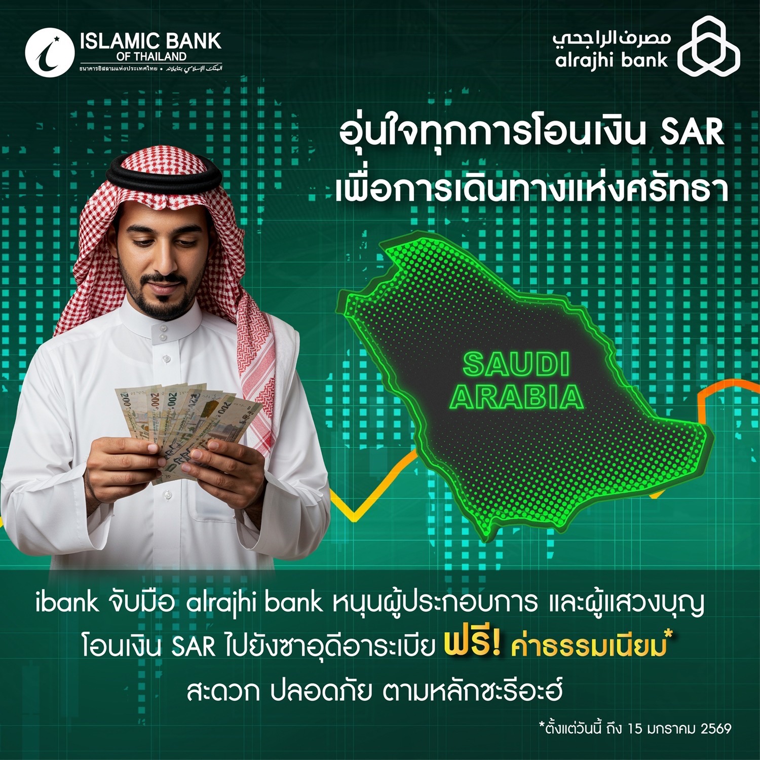 ธนาคารอิสลามแห่งประเทศไทย (ไอแบงก์) พร้อมเคียงข้างและร่วมสนับสนุน พี่น้องชาวมุสลิมรวมถึงผู้ประกอบการกิจการฮัจย์ให้ได้รับความสะดวกสบายยิ่งขึ้น ด้วยการโอนเงินสกุลริยาลซาอุดีอาระเบีย (SAR) โดยตรงไปยังประเทศซาอุดีอาระเบีย พร้อมทั้งผสานควมร่วมมือยกเว้นค่าธรรมเนียมการโอนกับธนาคารอัลราจฮี (alrajhi bank) เพื่ออำนวยความสะดวกในการบริหารจัดการงบประมาณและลดภาระค่าใช้จ่ายสำหรับผู้เดินทางไปปฏิบัติศาสนกิจฮัจย์และอุมเราะห์ โดยสิทธิพิเศษดังกล่าว เริ่มตั้งแต่วันนี้ ถึง 15 มกราคม 2569