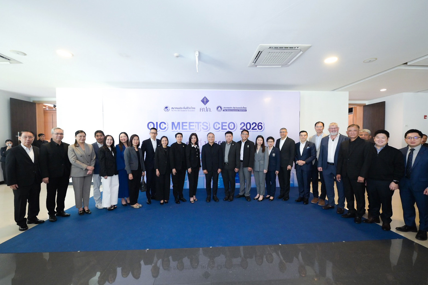 สมาคมประกันชีวิตไทย โดยนางนุสรา (อัสสกุล) บัญญัติปิยพจน์ นายกสมาคมฯ พร้อมด้วยคณะกรรมการบริหารสมาคมฯ และผู้บริหารจากบริษัทประกันชีวิตทุกบริษัท เข้าร่วมประชุมผู้บริหารระดับสูงด้านการประกันภัย (OIC Meets CEO 2026) ครั้งที่ 1/2569 ระหว่างสำนักงานคณะกรรมการกำกับและส่งเสริมการประกอบธุรกิจประกันภัย (คปภ.) และภาคธุรกิจประกันภัย เพื่อหารือร่วมกับภาคธุรกิจประกันภัยในประเด็นต่าง ๆ พร้อมทั้งติดตามความคืบหน้าการดำเนินงานตามข้อสรุปจากการประชุม OIC Meets CEO 2568 เพื่อพัฒนาอุตสาหกรรมประกันภัยให้เติบโตอย่างยั่งยืนควบคู่ไปกับการคุ้มครองสิทธิประโยชน์ให้กับประชาชน รวมถึงการสร้างธรรมาภิบาลให้กับบริษัทประกันภัยในการประกอบธุรกิจไปด้วยกัน โดยมี นายชูฉัตร ประมูลผล เลขาธิการคณะกรรมการกำกับและส่งเสริมการประกอบธุรกิจประกันภัย (เลขาธิการ คปภ.) เป็นประธานในที่ประชุม ณ ห้องประชุม 421 อาคารอเนกประสงค์ สถาบันวิชาการป้องกันประเทศ เมื่อวันที่ 5 มกราคม 2569