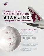 กาตาร์ แอร์เวย์ส ยังคงตอกย้ำความเป็นผู้นำอุตสาหกรรมในฐานะผู้ให้บริการ Starlink รายใหญ่ที่สุดของโลก และเป็นสายการบินแรกในภูมิภาคตะวันออกกลางและแอฟริกาเหนือ (MENA) ที่นำเทคโนโลยีล้ำสมัยนี้มาให้บริการ พร้อมเสริมความแข็งแกร่งในฐานะสายการบินระดับโลกที่มอบประสบการณ์การเดินทางเหนือระดับให้แก่ผู้โดยสารอย่างแท้จริง
