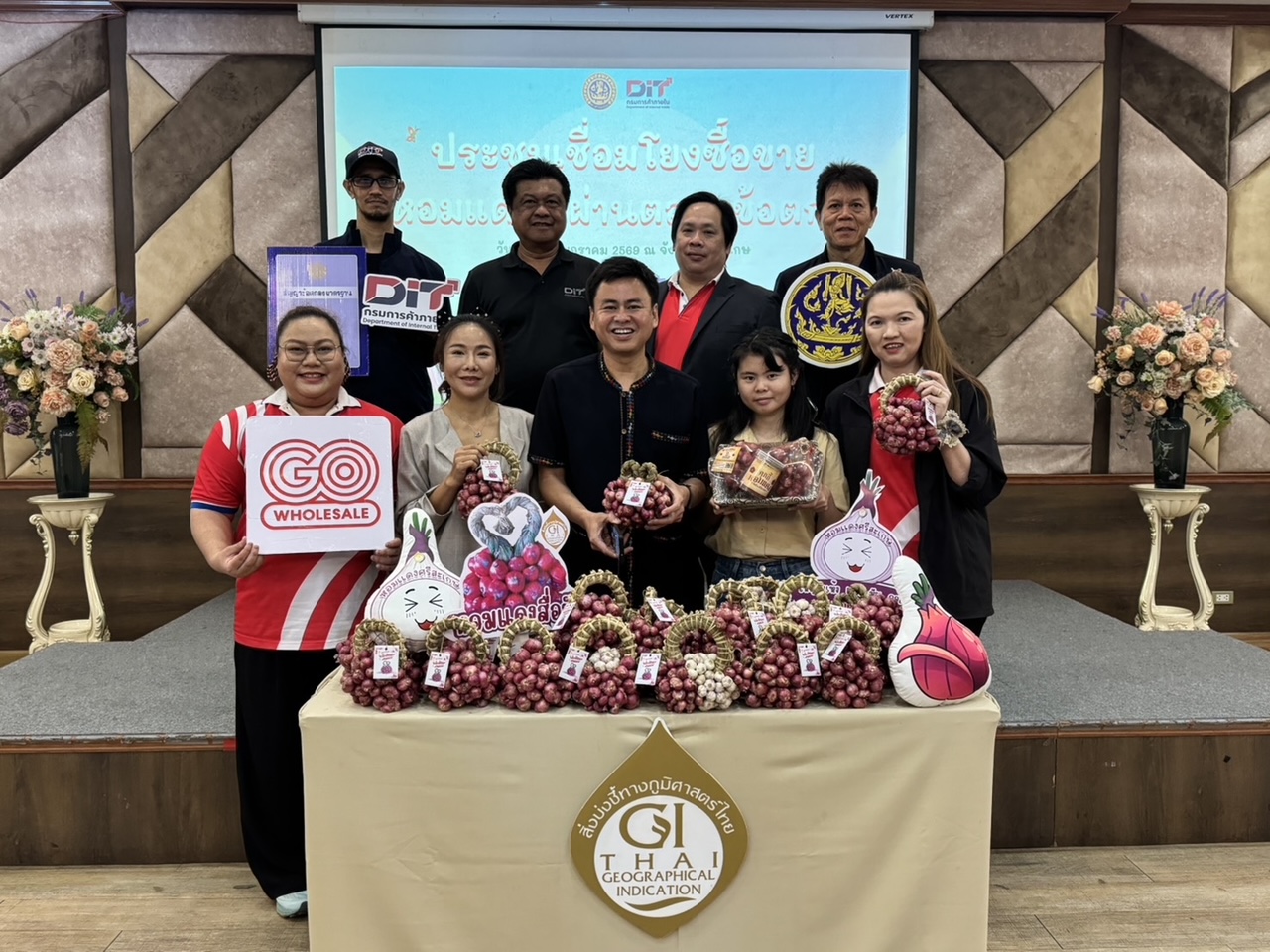 โก โฮลเซลล์ (GO WHOLESALE) ศูนย์ค้าส่งวัตถุดิบอาหาร ที่มีความสดใหม่ตลอดเวลาเพื่อผู้ประกอบการ ภายใต้การดำเนินงานของ บริษัท เซ็นทรัล ฟู้ด โฮลเซลล์ จำกัด ในเครือเซ็นทรัล รีเทล นำโดย นายสถาพร คล้ายสิทธิ์ ผู้อำนวยการ ฝ่ายบริหารสินค้าผักและผลไม้ พร้อมทีมงานฝ่ายจัดซื้อ โก โฮลเซลล์ ลงพื้นที่เฟ้นหาผลผลิตคุณภาพจากพี่น้องเกษตรกร วิสาหกิจชุมชนหอมแดงแปลงใหญ่แปรรูปและนวัตกรรมเกษตร อ.ยางชุมน้อย จ.ศรีสะเกษ ซึ่งเป็นหนึ่งในแหล่งเพาะปลูก ‘หอมแดงศรีสะเกษ’ สินค้า GI ชื่อดัง มาจำหน่ายยังสาขา และเข้าร่วมประชุมเชื่อมโยงซื้อขาย “หอมแดง” จังหวัดศรีสะเกษ ผ่านตลาดข้อตกลง โดยใช้สัญญาข้อตกลงมาตรฐานของกรมการค้าภายใน โดยมี นายจิรวุฒิ สุวรรณอาจ รองอธิบดีกรมการค้าภายใน เป็นประธาน ร่วมด้วยภาคีเครือข่ายภาคเอกชน ที่มาร่วมกันบรรเทาปัญหาให้พี่น้องเกษตรกร หลังเผชิญทั้ง ราคาผลผลิตตกต่ำ และความขัดแย้งตามแนวชายแดน ซึ่ง โก โฮลเซลล์ ได้ช่วยรับซื้อและวางแผนนำผลผลิตหอมแดงในพื้นที่ กระจายไปยังสาขาทั้ง 14 แห่งทั่วประเทศแล้ว