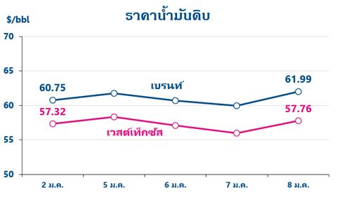 สรุปสถานการณ์ราคาน้ำมันในสัปดาห์ที่ผ่านมา (2 – 8 ม.ค. 69)