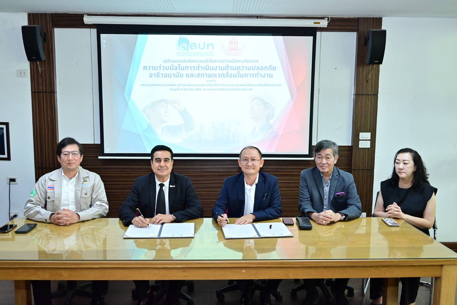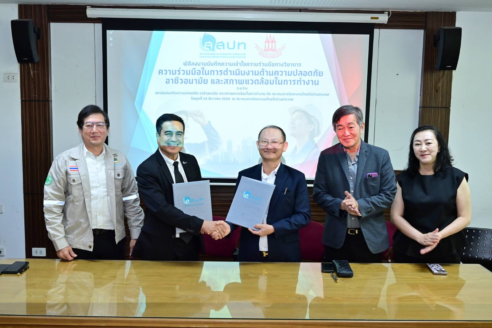 ด้วยนโยบายดังกล่าว เมื่อวันที่ 24 ธันวาคม 2568 ที่ผ่านมา สสปท.ได้ลงนามบันทึกความเข้าใจความร่วมมือทางวิชาการ (MOU) ร่วมกับ นายชินวัฒน์ ใจกุศลสูงยิ่ง นายกสมาคมการจัดหางานไทยไปต่างประเทศ เพื่อเสริมสร้างกลไกความร่วมมือในการพัฒนาศักยภาพแรงงานไทยก่อนเดินทางไปทำงานในต่างประเทศ โดยมุ่งเน้นการถ่ายทอดองค์ความรู้ด้านความปลอดภัยในการทำงาน