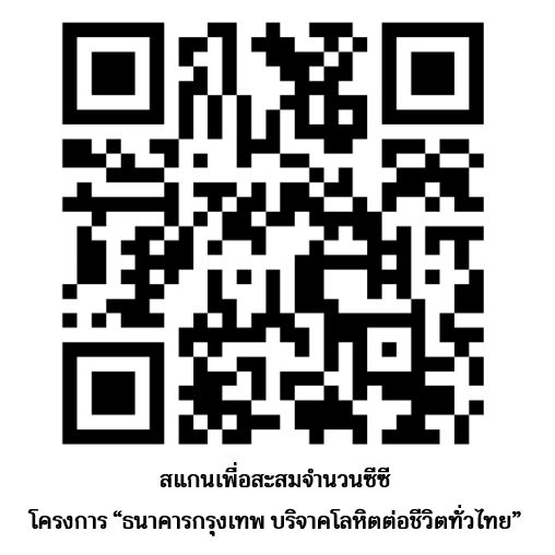 ผู้สนใจสามารถร่วมบริจาคโลหิตในโครงการ “ธนาคารกรุงเทพ บริจาคโลหิตต่อชีวิตทั่วไทย” ได้ ณ หน่วยรับบริจาคโลหิตเคลื่อนที่ของธนาคารกรุงเทพ ทั้ง 22 แห่งทุกภูมิภาคทั่วประเทศ หรือที่ ศูนย์บริการโลหิตแห่งชาติ สภากาชาดไทย ภาคบริการโลหิตแห่งชาติ 12 แห่งทั่วประเทศ หน่วยรับบริจาคโลหิตเคลื่อนที่ และโรงพยาบาลแต่ละจังหวัดที่เป็นโรงพยาบาลสาขาบริการโลหิต พร้อมสแกนคิวอาร์โค้ด กรอกข้อมูล ร่วมสะสมจำนวนซีซี กับ โครงการฯ