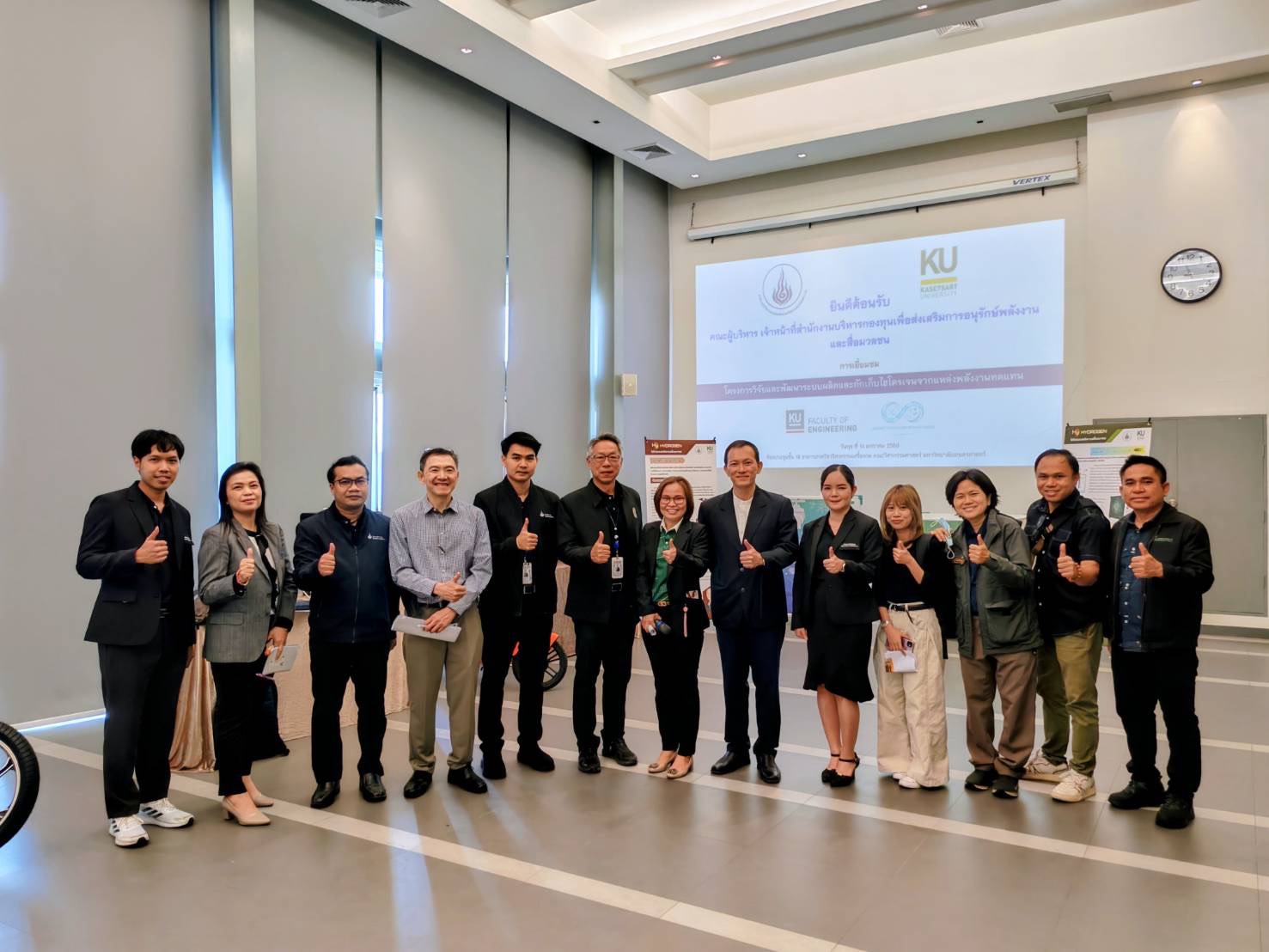 “ไฮโดรเจนเป็นพลังงานทางเลือกที่หลายประเทศให้ความสำคัญ นอกจากช่วยเพิ่มประสิทธิภาพการใช้พลังงานจากพลังงานหมุนเวียนแล้ว ยังเป็นตัวช่วยเร่งเปลี่ยนผ่านสู่พลังงานสะอาด ลดการปล่อยก๊าซเรือนกระจกมุ่งสู่เป้าหมาย Net Zero กองทุนอนุรักษ์พลังงานสนับสนุนด้านการวิจัยและพัฒนาระบบผลิตและกักเก็บไฮโดรเจน ซึ่งจะต่อยอดไปสู่ผลิตภัณฑ์อื่นได้หลากหลาย ความก้าวหน้าด้านเทคโนโลยีการผลิตและกักเก็บไฮโดรเจนจึงเป็นปัจจัยสำคัญในการยกระดับความมั่นคงทางพลังงานและลดการพึ่งพาเชื้อเพลิงฟอสซิลของประเทศ โดยความสำเร็จของโครงการวิจัยและพัฒนานี้ยังสะท้อนให้เห็นถึงบทบาทสำคัญของกองทุนอนุรักษ์พลังงานในการผลักดันงานวิจัยด้านพลังงานสะอาด และเป็นก้าวสำคัญในการวางรากฐานเทคโนโลยีพลังงานไฮโดรเจนของประเทศไทย เพื่อรองรับการพัฒนาอย่างยั่งยืนและการใช้พลังงานสะอาดในอนาคต” ผู้จัดการส.กทอ. กล่าวในท้ายที่สุด