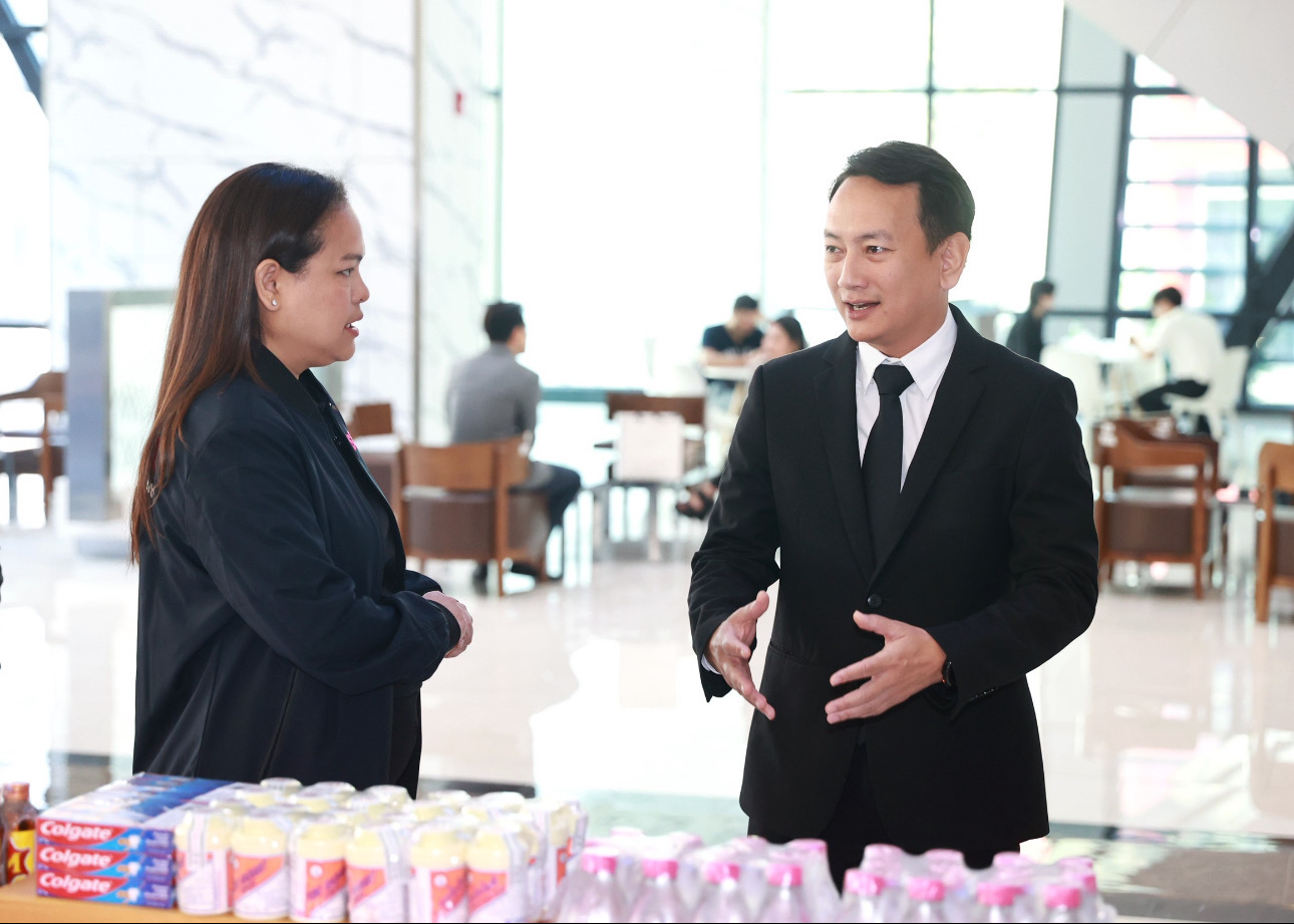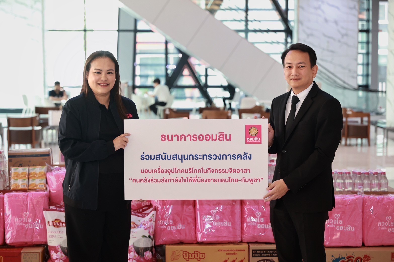 นายพลจักร นิ่มวัฒนา ที่ปรึกษาด้านนโยบายและยุทธศาสตร์ กระทรวงการคลัง รับมอบเครื่องอุปโภคบริโภคในกิจกรรมจิตอาสา ”คนคลังร่วมส่งกำลังใจให้พี่น้องชายแดนไทย-กัมพูชา“ จากธนาคารออมสิน โดยมี นางสาววชิรา การสุทธิ์ รองผู้อำนวยการธนาคารออมสิน กลุ่มการตลาดเพื่อความยั่งยืน เป็นผู้ส่งมอบ เพื่อร่วมสนับสนุนภารกิจกระทรวงการคลัง ส่งมอบกำลังใจในการปฏิบัติภารกิจการช่วยเหลือกำลังพลที่บาดเจ็บ และครอบครัวกำลังพลที่เสียชีวิตจากสถานการณ์ชายแดนไทย–กัมพูชา โดยธนาคารออมสิน ธนาคารเพื่อสังคม พร้อมส่งมอบกำลังใจและยืนเคียงข้างคนไทยในทุกสถานการณ์ ณ กระทรวงการคลัง เมื่อวันที่ 15 มกราคม 2569