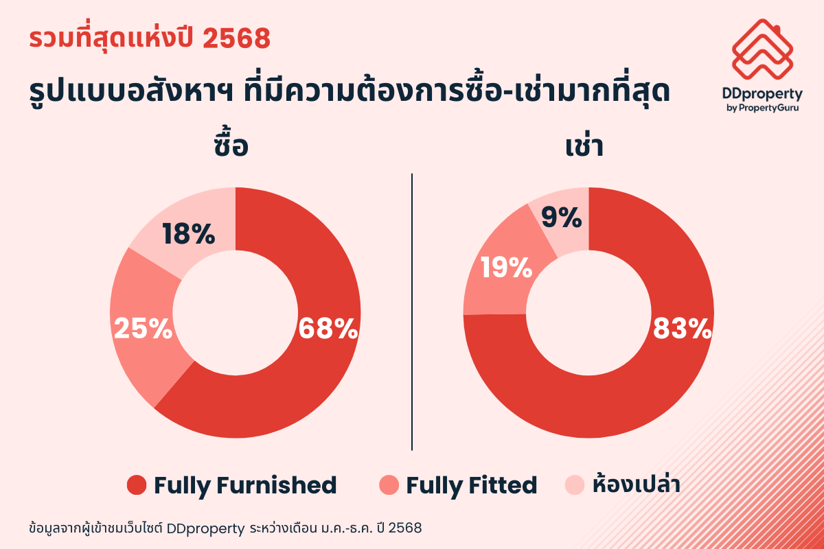 ดีดีพร็อพเพอร์ตี้ (DDproperty) แพลตฟอร์มอสังหาริมทรัพย์อันดับ 1 ของไทย เผยข้อมูลเชิงลึกจากผู้เข้าเยี่ยมชมในเว็บไซต์ www.DDproperty.com ในรอบปี 2568 ที่เข้ามาใช้ฟีเจอร์ค้นหา (Search) รวมถึงข้อมูลที่แสดงความสนใจชมประกาศขาย-ให้เช่า และกรอกข้อมูลให้ติดต่อกลับ ซึ่งถือเป็นกลุ่มผู้บริโภคที่มีศักยภาพในการซื้อและเช่าในอนาคตมากที่สุด สะท้อนให้เห็นเทรนด์ความต้องการซื้อและเช่าที่อยู่อาศัยของผู้บริโภคชาวไทยทั่วประเทศในรอบปีที่ผ่านมา พร้อมอัปเดตทำเลศักยภาพที่มีแนวโน้มการเติบโตอย่างน่าสนใจในอนาคต