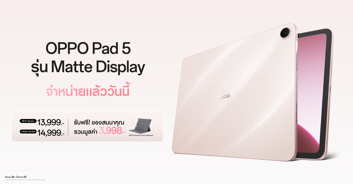 สำหรับลูกค้าที่ซื้อ OPPO Pad 5 ในวันนี้ - 31 มกราคม 2569 จะได้รับของสมนาคุณพิเศษ ดังนี้