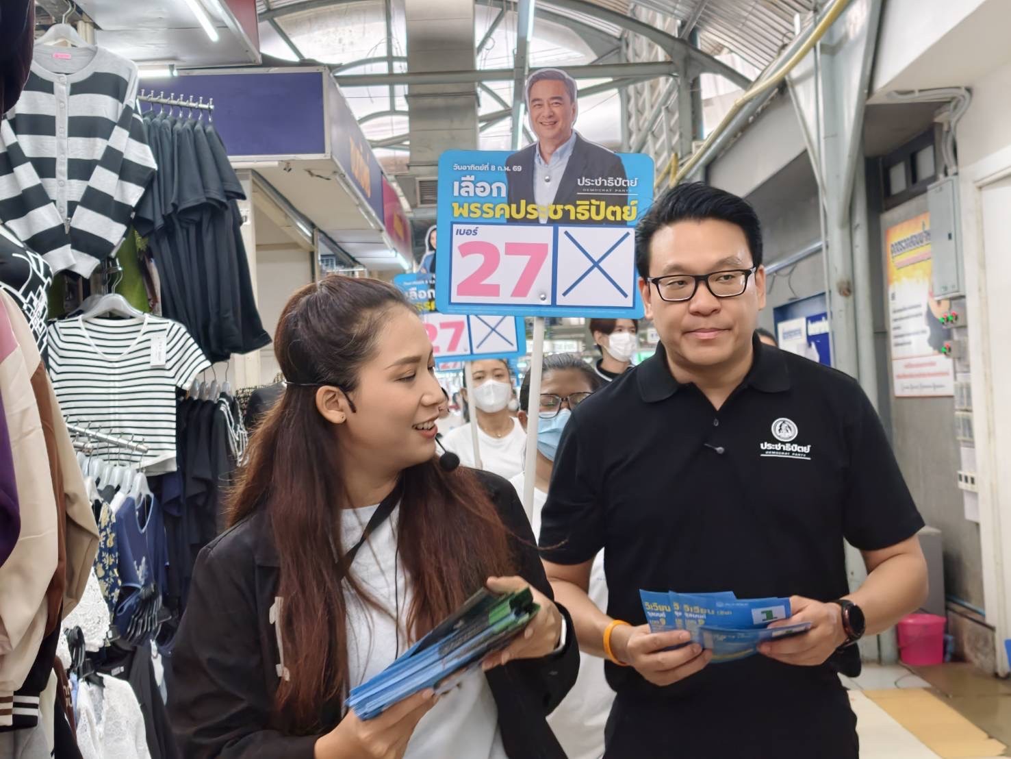 นายสกลธี ภัททิยกุล รองหัวหน้าพรรคประชาธิปัตย์ ดูแลพื้นที่กรุงเทพมหานคร พร้อมด้วย นางรัดเกล้า อินทวงศ์ สุวรรณคีรี รองหัวหน้าพรรค ร่วมลงพื้นที่กับ นางสาววิเวียน จุลมนต์ ผู้สมัครสมาชิกสภาผู้แทนราษฎร กรุงเทพมหานคร เขต 9 พรรคประชาธิปัตย์ เบอร์ 1 ครอบคลุมพื้นที่จตุจักร - บางเขน - หลักสี่ พบปะประชาชนและพ่อค้าแม่ค้าในตลาดยิ่งเจริญ เขตบางเขน ท่ามกลางสถานการณ์ฝุ่นละออง PM2.5 ที่อยู่ในระดับสีส้มถึงสีแดง ซึ่งส่งผลกระทบต่อสุขภาพของประชาชนอย่างน่ากังวล