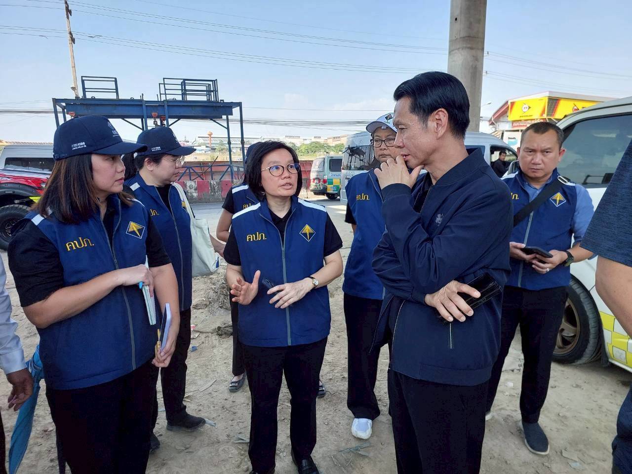ต่อมาในวันที่ 16 มกราคม 2569 เวลา 14.00 น. นายอนุทิน ชาญวีรกูล นายกรัฐมนตรีและรัฐมนตรีว่าการกระทรวงมหาดไทย พร้อมด้วยนายอรรษิษฐ์ สัมพันธรัตน์ ปลัดกระทรวงมหาดไทย และผู้บริหารระดับสูงจากกรมป้องกันและบรรเทาสาธารณภัย กรมโยธาธิการและผังเมือง และกรมทางหลวง ได้ลงพื้นที่ตรวจติดตามสถานการณ์และการปฏิบัติงานในจุดเกิดเหตุ โดยมีนายอำนาจ เจริญศรี ผู้ว่าราชการจังหวัดสมุทรสาคร ในฐานะผู้บัญชาการเหตุการณ์ พร้อมด้วยนางจันทิมา มีโส ผู้อำนวยการภาค สำนักงาน คปภ. ภาค 7 (นครปฐม) และผู้อำนวยการสำนักงาน คปภ. จังหวัดสมุทรสาคร ร่วมลงพื้นที่และรายงานสถานการณ์การช่วยเหลือเยียวยาผู้ได้รับผลกระทบ