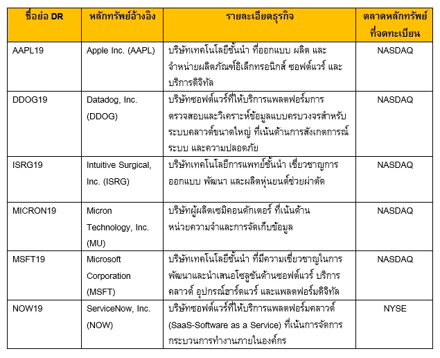ตลาดหลักทรัพย์แห่งประเทศไทย รับจดทะเบียนตราสารแสดงสิทธิในหลักทรัพย์ต่างประเทศ (DR) 6 หลักทรัพย์ใหม่ อ้างอิงหุ้นชั้นนำในตลาดหลักทรัพย์แนสแด็ก (NASDAQ) และตลาดหลักทรัพย์นิวยอร์ก (NYSE) ออกโดย บริษัทหลักทรัพย์ หยวนต้า (ประเทศไทย) จำกัด (Yuanta) เริ่มซื้อขายในตลาดหุ้นไทย 20 มกราคม 2569