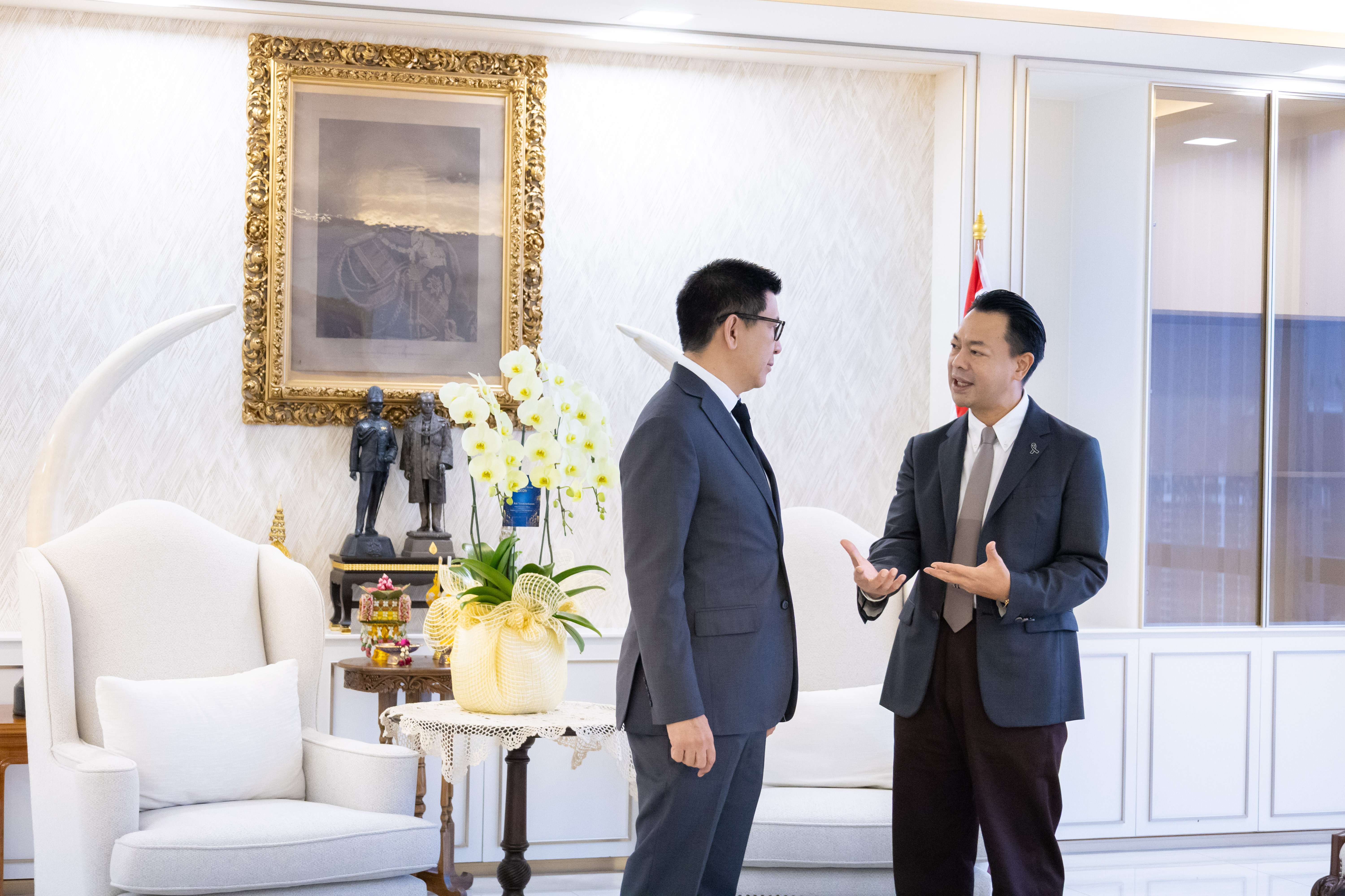 ดร.รักษ์ วรกิจโภคาทร ประธานเจ้าหน้าที่บริหาร บริษัทบริหารสินทรัพย์ กรุงเทพพาณิชย์ จำกัด (มหาชน) หรือ BAM พร้อมคณะผู้บริหารระดับสูง เข้าอวยพรปีใหม่ ดร.เอกนิติ นิติทัณฑ์ประภาศรองนายกรัฐมนตรี และรัฐมนตรีว่าการกระทรวงการคลัง เนื่องในโอกาสวาระดิถีขึ้นปีใหม่ พ.ศ. 2569 ในการเข้าพบครั้งนี้ BAM ได้รับฟังแนวนโยบายด้านเศรษฐกิจและทิศทางการดูแลเสถียรภาพระบบการเงิน พร้อมยืนยันความมุ่งมั่นในการขับเคลื่อนบทบาทของ BAM ในฐานะ Asset Management Company โดยมุ่งช่วยเหลือลูกหนี้ให้สามารถปรับโครงสร้างหนี้ได้อย่างยั่งยืน ควบคู่กับการบริหารจัดการทรัพย์สินด้อยคุณภาพให้กลับเข้าสู่ระบบเศรษฐกิจ อย่างมีประสิทธิภาพ ณ กระทรวงการคลัง
