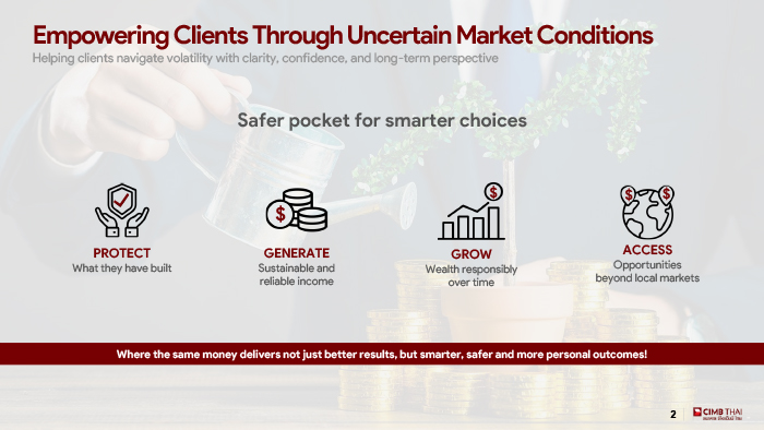 สำหรับโซลูชันการลงทุน ที่ CIMB THAI จัดมาให้ครอบคลุมทุกมิติของ Safer Pocket ประกอบด้วย