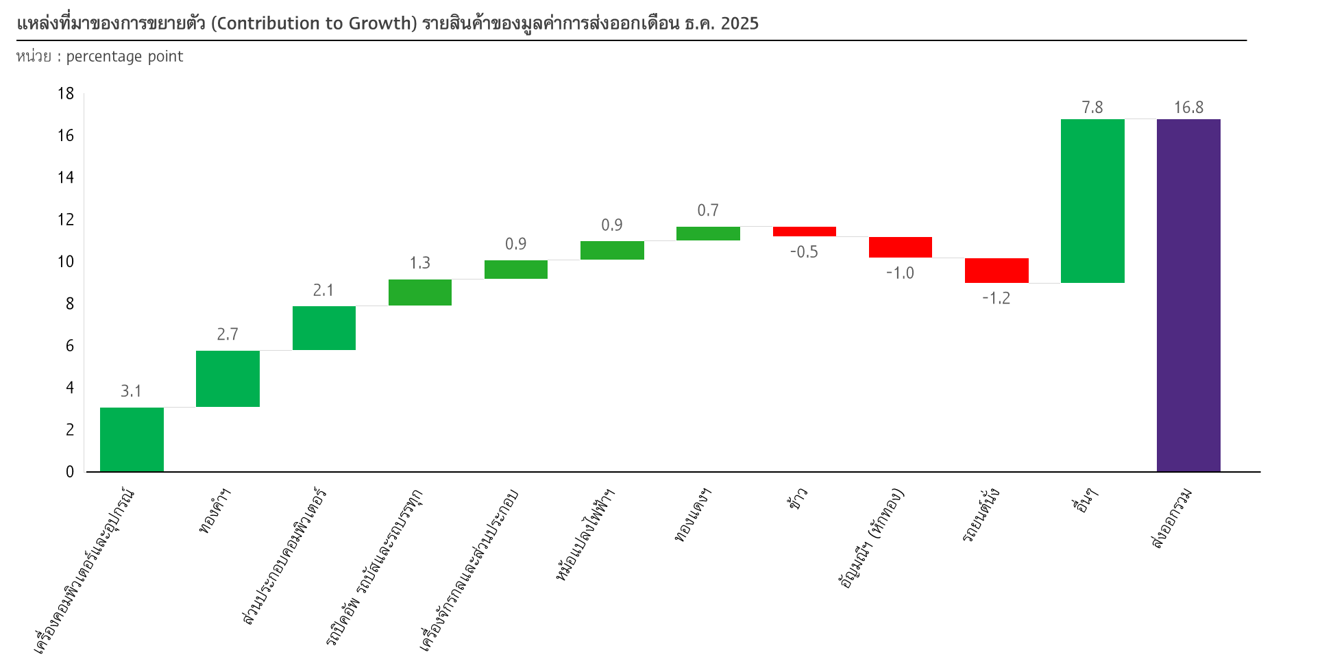 รูปที่ 2 : คอมพิวเตอร์และอุปกรณ์ ทองคำฯ ส่วนประกอบคอมพิวเตอร์ และรถพิกอัปหนุนส่งออกเดือน ธ.ค. 2025 ขณะที่ส่งออกข้าวหดตัวต่อเนื่อง