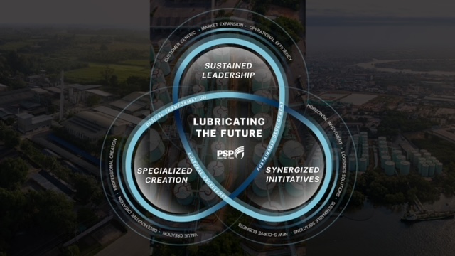 นายเสกสรรกล่าวเพิ่มเติมว่า เพื่อเร่งเพิ่มรายได้และกำไรจากการดำเนินงานในปี 2569 PSP ได้กำหนด 3 กลยุทธ์หลักในการขับเคลื่อนธุรกิจ ซึ่งกลยุทธ์แรก คือ การต่อยอดความเป็นผู้นำอย่างยั่งยืน (Sustained Leadership) โดยมุ่งสร้างความแข็งแกร่งในธุรกิจหลักของบริษัท ทั้งกลุ่มผลิตภัณฑ์หล่อลื่น น้ำมันหม้อแปลงไฟฟ้า น้ำมันอุตสาหกรรม และน้ำมันผสมยาง ผ่านการยึดลูกค้าเป็นศูนย์กลาง การเพิ่มประสิทธิภาพการผลิต และการบริหารจัดการห่วงโซ่อุปทานอย่างมีประสิทธิภาพ เพื่อรองรับความต้องการของลูกค้าที่ขยายตัวต่อเนื่องจากการย้ายฐานการผลิตเข้ามาในประเทศและในภูมิภาคอาเซียน ควบคู่กับการขยายตลาดต่างประเทศ โดยตั้งเป้าเพิ่มสัดส่วนรายได้จากการส่งออกเป็นร้อยละ 30 ภายในปี 2571 เพื่อสร้างพอร์ตธุรกิจที่สมดุลและสนับสนุนการเติบโตของกำไรอย่างต่อเนื่องในระยะยาว