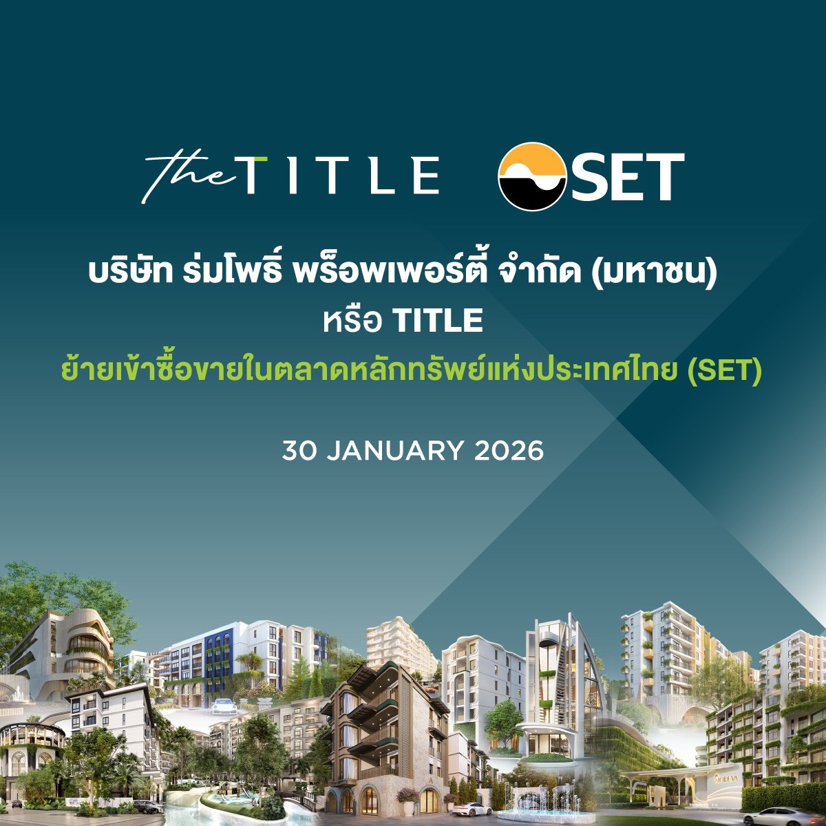 ทั้งนี้ ตลาดหลักทรัพย์ mai ถือเป็นเวทีสำคัญที่ TITLE เติบโตและพัฒนามาอย่างต่อเนื่อง โดยเป็นตลาดที่เล็งเห็นศักยภาพของบริษัทตั้งแต่ช่วงเริ่มต้น และมีบทบาทสำคัญในการวางรากฐานด้านระบบบริหารจัดการ มาตรฐานการกำกับดูแลกิจการ และวินัยทางธุรกิจ จนบริษัทสามารถเติบโตได้อย่างมั่นคง การย้ายเข้าซื้อขายในตลาดหลักทรัพย์แห่งประเทศไทย (SET) จึงถือเป็นก้าวต่อไปตามพัฒนาการขององค์กร สะท้อนถึงขนาดธุรกิจ ศักยภาพ และความพร้อมในการยกระดับสู่เวทีที่ใหญ่ขึ้น เพื่อรองรับการขยายการลงทุน และการเติบโตอย่างยั่งยืนในระยะยาว