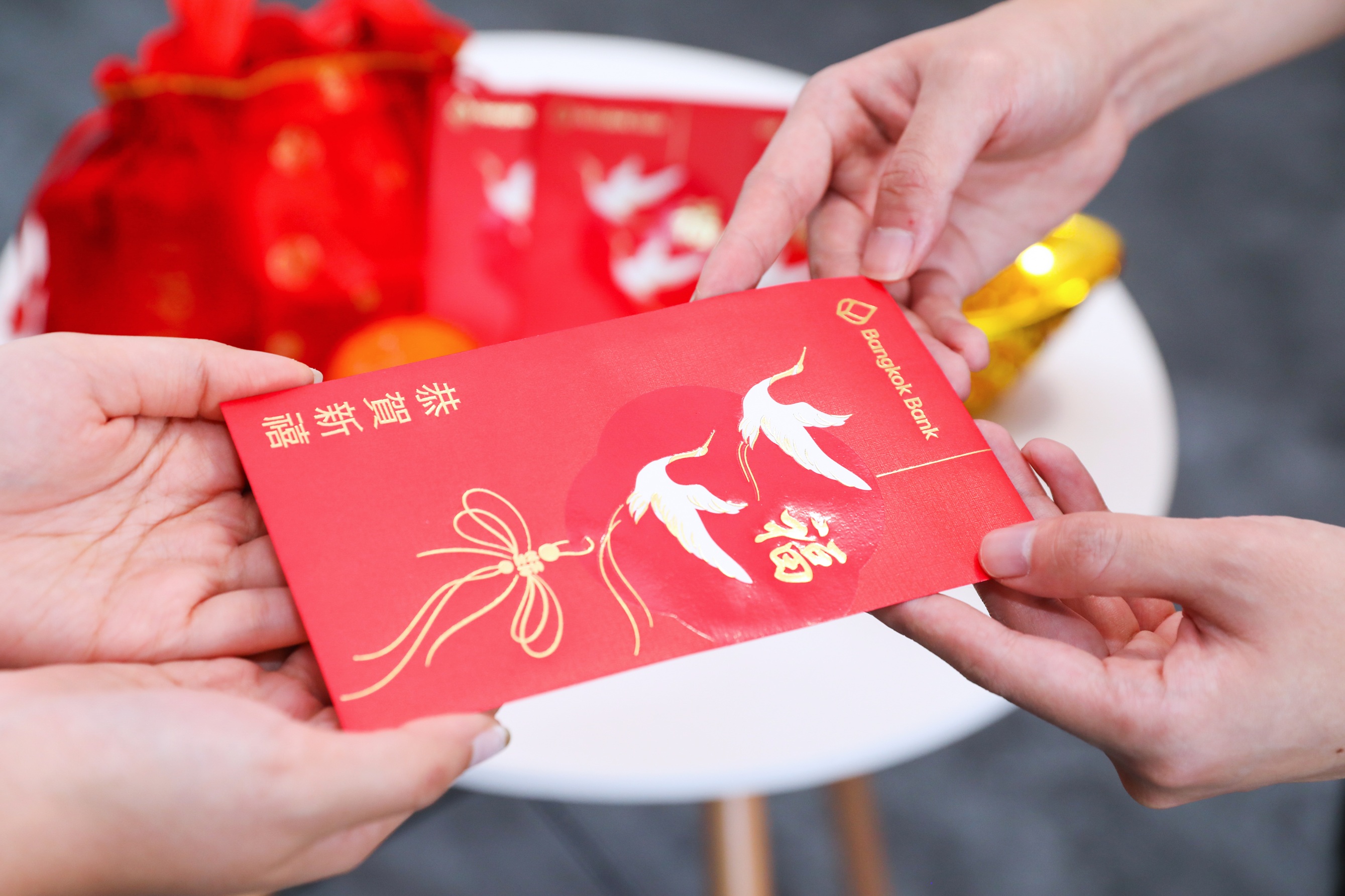 ธนาคารกรุงเทพ จำกัด (มหาชน) ในฐานะ "ธนาคารชั้นนำระดับภูมิภาค" เฉลิมฉลองเทศกาลตรุษจีนปีมะเมีย 2569 ด้วยการยกระดับการส่งมอบความสุขสู่ระดับสากล ผ่านการจัดทำซองอั่งเปาสุดพิถีพิถันเพื่อแจกจ่ายให้แก่ลูกค้า ผ่านทุกสาขาของธนาคารกรุงเทพทั้งสาขาในประเทศไทยและสาขาต่างประเทศ โดยเนื้อหาบนซองยังคงความหมายอันเป็นมงคลด้วยภาพ "นกกระเรียนคู่" สัญลักษณ์แห่งความยั่งยืน และอักษรจีน "ฝู" (?) ที่สื่อถึงความสุขและโชคลาภ เพื่อสะท้อนถึงความมุ่งมั่นของธนาคารในการเติบโตเคียงข้างลูกค้าในทุกย่างก้าวอย่างมั่นคงและมั่งคั่ง