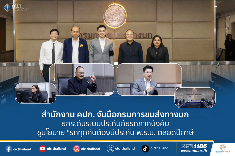 เมื่อวันที่ 4 กุมภาพันธ์ 2569 นายชูฉัตร ประมูลผล เลขาธิการคณะกรรมการกำกับและส่งเสริมการประกอบธุรกิจประกันภัย (เลขาธิการ คปภ.) ได้ประชุมหารือร่วมกับ นายสรพงษ์ ไพฑูรย์พงษ์ อธิบดีกรมการขนส่งทางบก ณ ห้องประชุมกรมการขนส่งทางบก เพื่อยกระดับระบบประกันภัยรถภาคบังคับ (พ.ร.บ.) ให้เป็นกลไกหลักในการคุ้มครองผู้ประสบภัยจากรถอย่างมีประสิทธิภาพ และลดปัญหารถขาดความคุ้มครองในระหว่างรอบปีภาษี