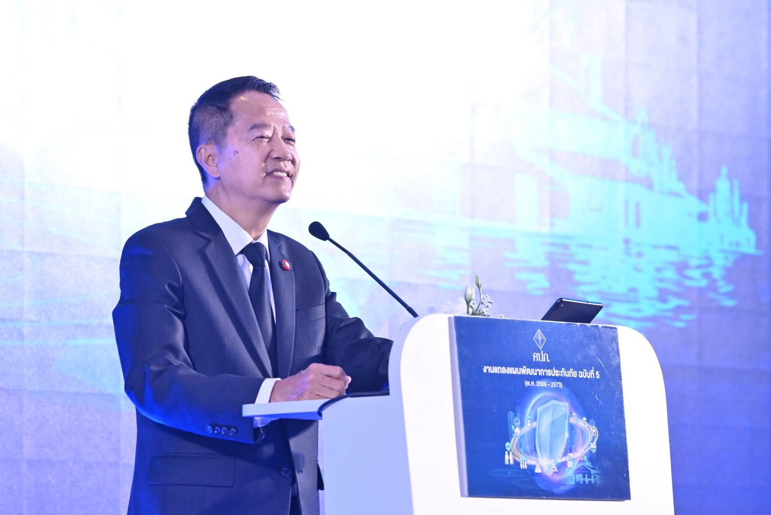 โดยในช่วงท้าย นายชูฉัตร ประมูลผล เลขาธิการ คปภ. กล่าวสรุปเพิ่มเติมว่า หากมองย้อนกลับไปในแผนพัฒนาการประกันภัย ฉบับที่ 4 ประเทศไทยได้ร่วมกันวางรากฐานสำคัญด้านการเปลี่ยนผ่านสู่ดิจิทัล (Digital Transformation) อย่างเป็นระบบ อย่างไรก็ตาม บริบทของโลกในปัจจุบันมีการเปลี่ยนแปลงรวดเร็วกว่าที่คาดการณ์ไว้ ส่งผลให้แผนพัฒนาการประกันภัย ฉบับที่ 5 มิได้เป็นเพียงแผนต่อเนื่อง แต่เป็น “วิวัฒนาการเชิงโครงสร้าง” ของระบบประกันภัยไทย ที่ยกระดับจากการส่งเสริมการใช้เทคโนโลยี ไปสู่การบริหารความเสี่ยงเชิงโครงสร้างในระดับประเทศอย่างแท้จริง ซึ่งหากแผนพัฒนาการประกันภัย ฉบับที่ 4 มุ่งเน้นการสร้างบริษัทประกันภัยที่ทันสมัย แผนฉบับที่ 5 จะมุ่งสร้าง “ระบบนิเวศข้อมูลที่เชื่อมโยงกัน” (Data Ecosystem) อย่างเป็นรูปธรรม และจากเดิมที่การกำกับดูแลเน้นรายบริษัท แผนฉบับที่ 5 ได้ยกระดับไปสู่การกำกับดูแลแบบมองภาพรวมกลุ่มธุรกิจ (Group-wide Supervision) เพื่อปิดช่องว่างความเสี่ยงเชิงระบบอย่างครบวงจร ที่สำคัญที่สุดแผนพัฒนาการประกันภัย ฉบับที่ 5 ได้ปรับบทบาทของระบบประกันภัยไทยจากการเป็น “ทางเลือก” ให้กลายเป็น “National Risk Buffer” หรือกลไกสำคัญ ในการรองรับแรงกระแทกของประเทศ เพื่อเสริมสร้างความมั่นคงทางเศรษฐกิจ สังคม และความสามารถในการรับมือกับความเสี่ยงขนาดใหญ่ในระยะยาวอย่างยั่งยืน