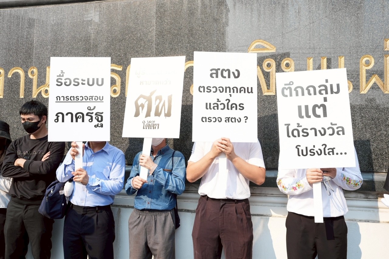 ผู้ชุมนุมได้ชูป้ายข้อความ อาทิ “รื้อระบบการตรวจสอบภาครัฐ” “ผู้รับผิดชอบหายากกว่าศพ” “สตง. ตรวจสอบทุกคน แล้วใครตรวจสอบ สตง.” ฯลฯ ทั้งนี้ เพื่อสะท้อนข้อกังวลต่อความล้มเหลวของกลไกตรวจสอบและการขาดความรับผิดรับชอบในภาครัฐ