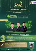 โอกาสนี้ ขอเชิญชวนผู้ประกอบการธุรกิจ Wellness (สปา นวดเพื่อสุขภาพ ธุรกิจดูแลผู้สูงอายุ ธุรกิจเสริมความงาม ฟิตเนส และธุรกิจบริการสุขภาพ) และผู้สนใจสมัครเข้าร่วมอบรมหลักสูตร “DBD Wellness ConNext : พลิกเกมธุรกิจสุขภาพด้วย AI สร้างเครือข่ายการค้ายั่งยืน” ได้ตั้งแต่บัดนี้ - วันที่ 15 กุมภาพันธ์ 2569 ทางเว็บไซต์ www.dbd.go.th (หัวข้ออบรม/สัมมนา) หรือสแกนคิวอาร์โค้ดตามโปสเตอร์ประชาสัมพันธ์