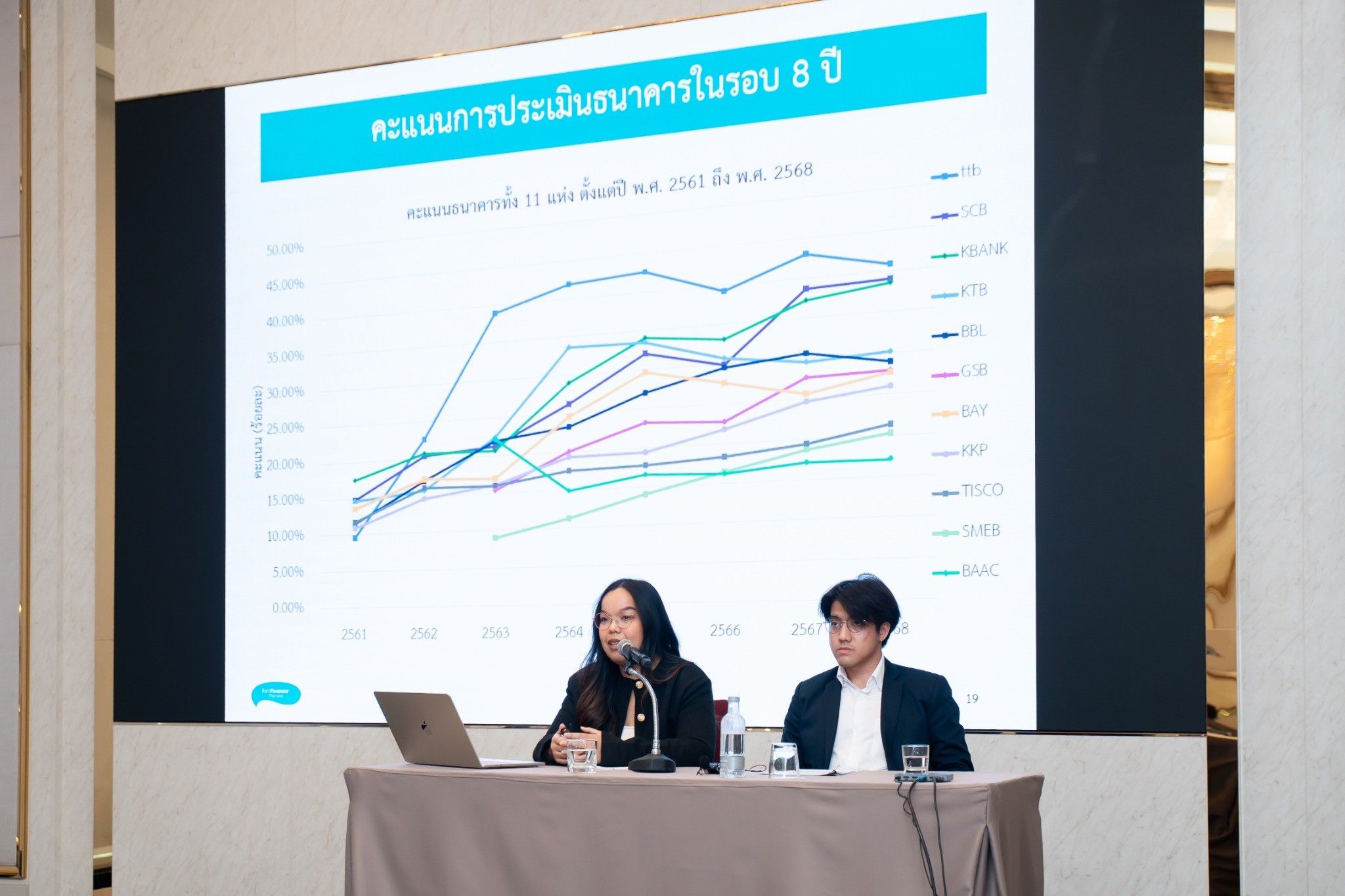 กลุ่มธนาคารพาณิชย์: ธนาคารทหารไทยธนชาต (ttb) ครองอันดับ 1 ต่อเนื่องเป็นปีที่ 7 ด้วยคะแนน 40.75% ตามด้วย ธนาคารไทยพาณิชย์ (SCB) ที่ 38.95% และ ธนาคารกสิกรไทย (KBANK) ที่ 38.47% กลุ่มธนาคารเฉพาะกิจ: ธนาคารออมสิน (GSB) ยังคงรักษาสถานะผู้นำในหมวดนี้ด้วยคะแนน 27.90%